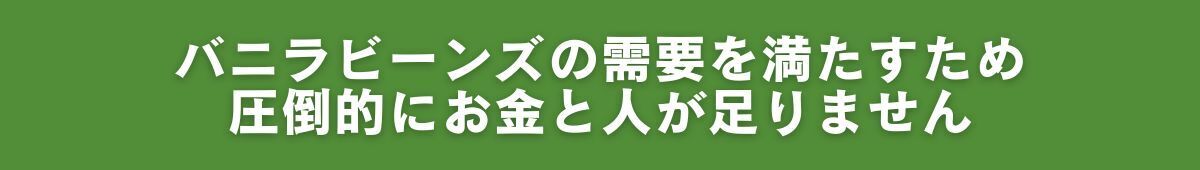 しかし、土地の貸し借りの問題や、そもそもハウスを整えるために設備投資費用がかなりかかるため、バニラハウスを増やすプロジェクトは難航しています。