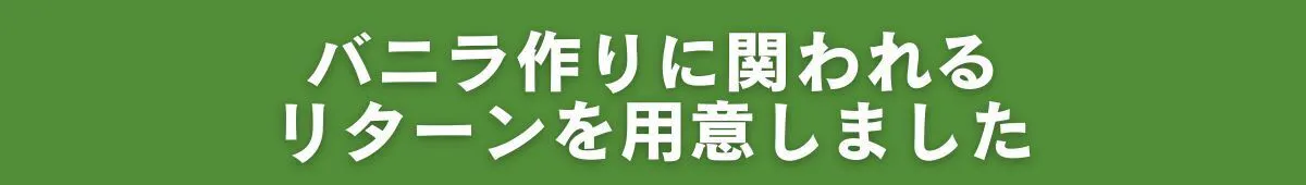 1万円の支援でバニラ栽培を0.5本分植えられます。ぜひぜひ、温かいご支援をお待ちしております。