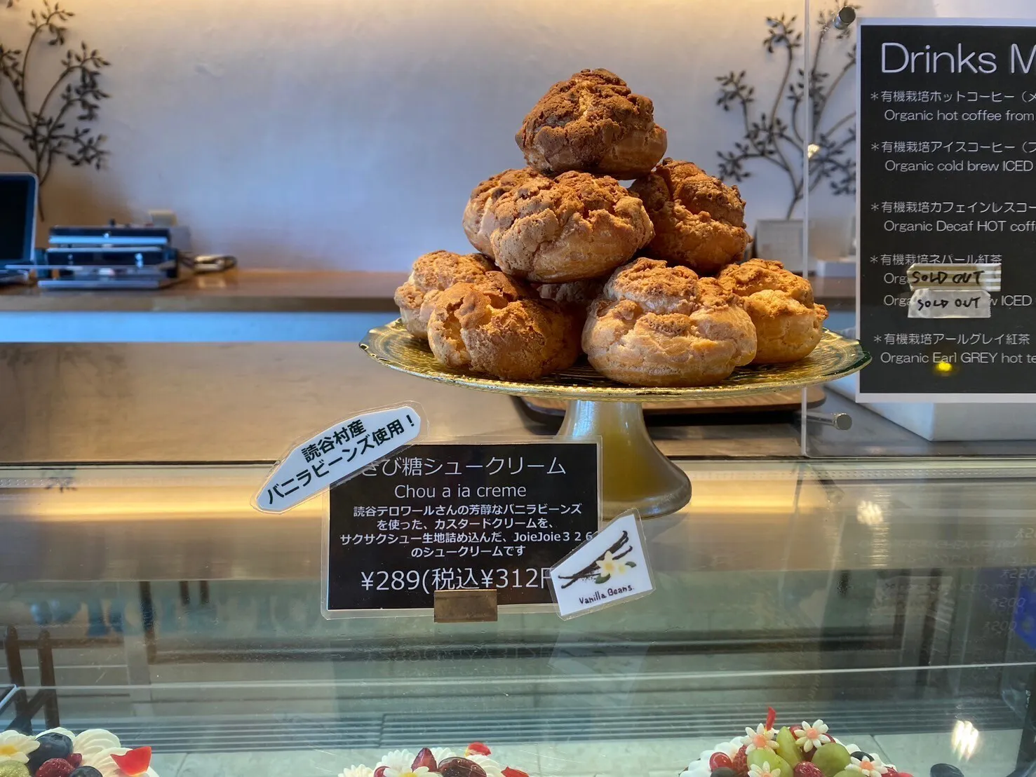 お菓子作りにおいてバニラはアロマとして重要と考えています。JoieJoie326のシュークリームはシュー生地、カスタードの素材にもこだわっていて、沖縄県産や国産の小麦粉や読谷村の卵、国産のきび糖を使用しています。そこに芳醇な香りが特徴な読谷テロワールのバニラビーンズを使うことでパーフェクトに仕上がっています。
