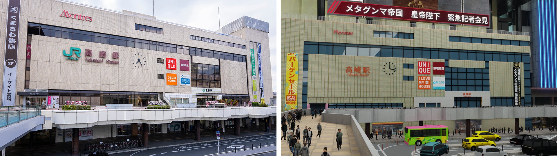 【実際の高崎駅と仮想世界の高崎駅】