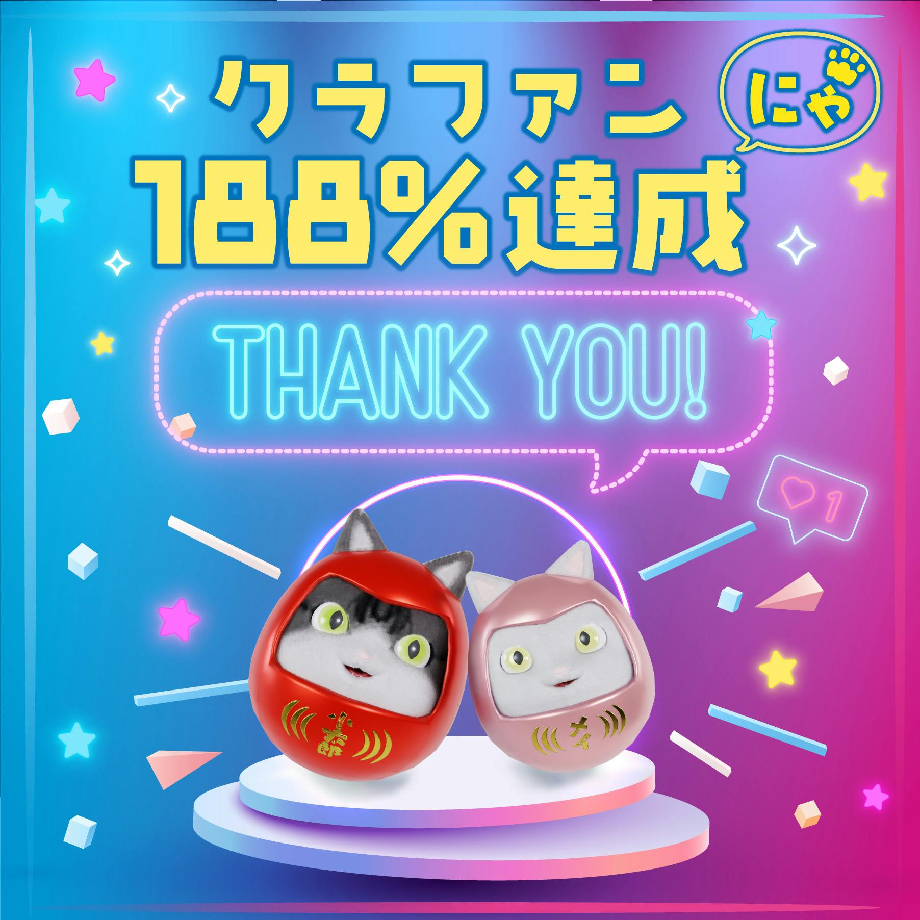 現在リターンの集計中でして、ネコダルマスタンプ、Tシャツなどグッズの返礼時期の情報は追って報告をしたいと思います。