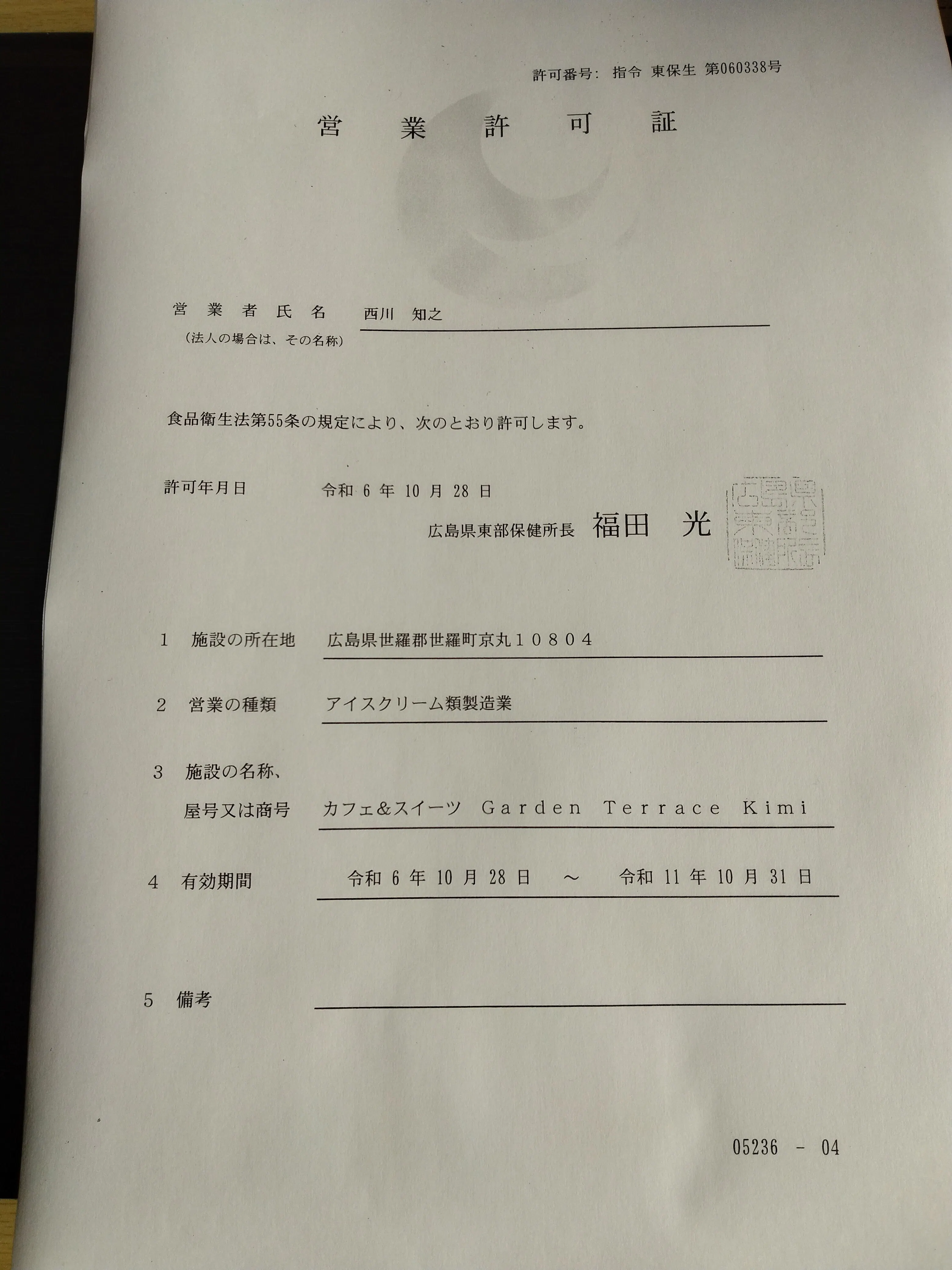 2024/11/24 15:2510月中旬にジェラートマシーンを搬入し、10月末にアイスクリーム製造業の営業許可をいただきました!諸々の準備もでき、ようやく販売できるようになりました。 ご報告がなかなかできておらず、すみませんでした。ネット販売も手軽にできるようにすすめてまいります!これからもよろしくお願いいたします。 もっと見る