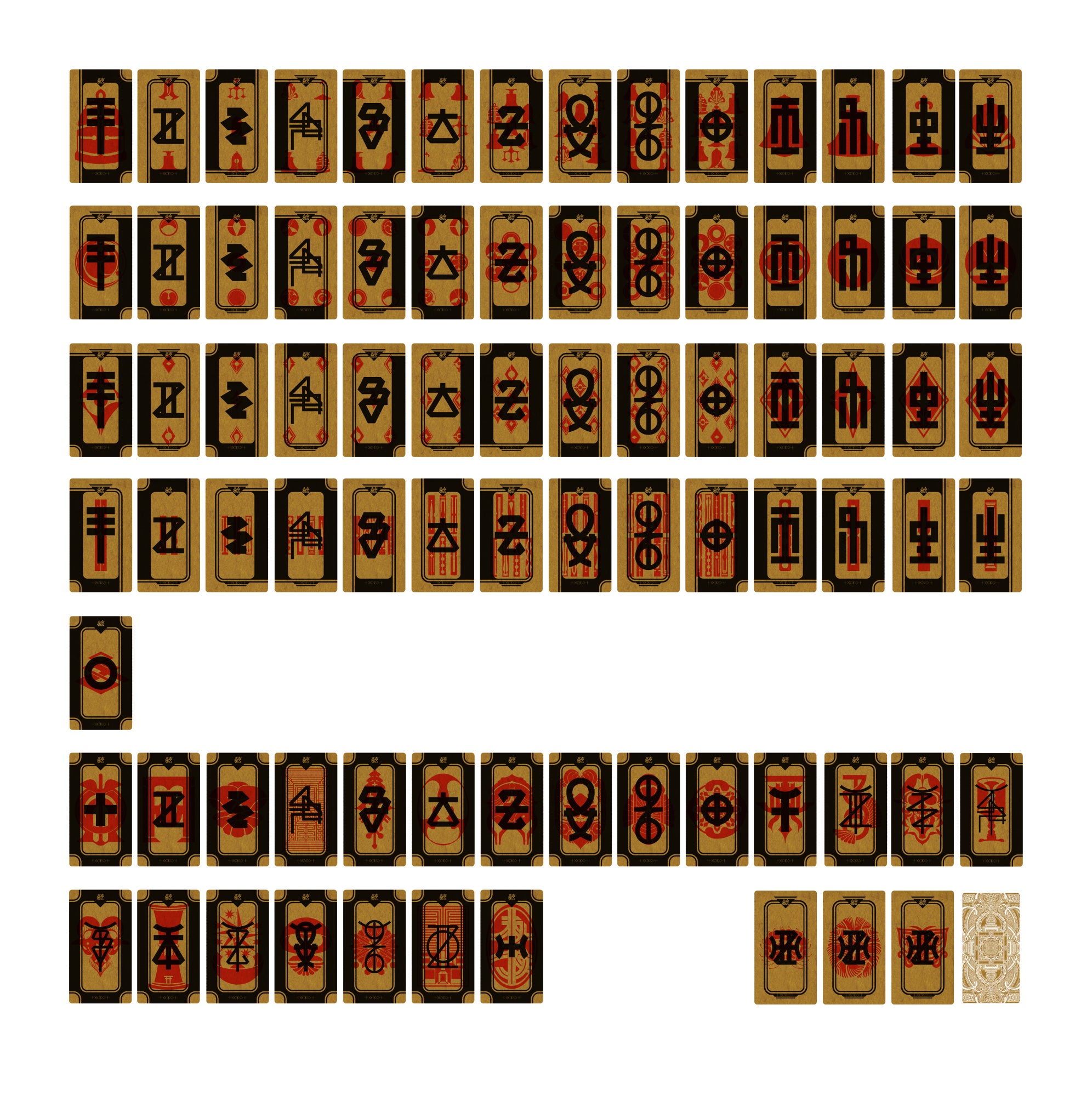 ゲームのルール的に小アルカナと大アルカナの区別をつきやすくしたかった。色を変える、数の書体を変える、等の案があったが、そもそも基になったタロットもわかりやすい違いがあるかと言ったらそんなことないので遊びやすさに関しては無視する事とした。見慣れたらわかる。今回、遊べることは重要だが遊びやすさは重要ではなく、タロットであることがまず重要と考えている。タロット、札に良いも悪いもレアリティも無い。どれかの札が特別目立つようになる状況を避けたかった。プロスフェアー、軍儀、実際に遊ぶことが叶わなくても魅力を感じるのは、そこに人の想像力が宿るからと思う。積み本も積みゲーもそれでしか得られない楽しみがある。タロット、別におもしろいものではない。適当に並べた札が開かれるだけ。占いが当たるかどうかみたいなものは関係なく、そこに人の想像力が働くことが魅力になるものと思う。霊的な現象はあるが、それを信仰はしていない。