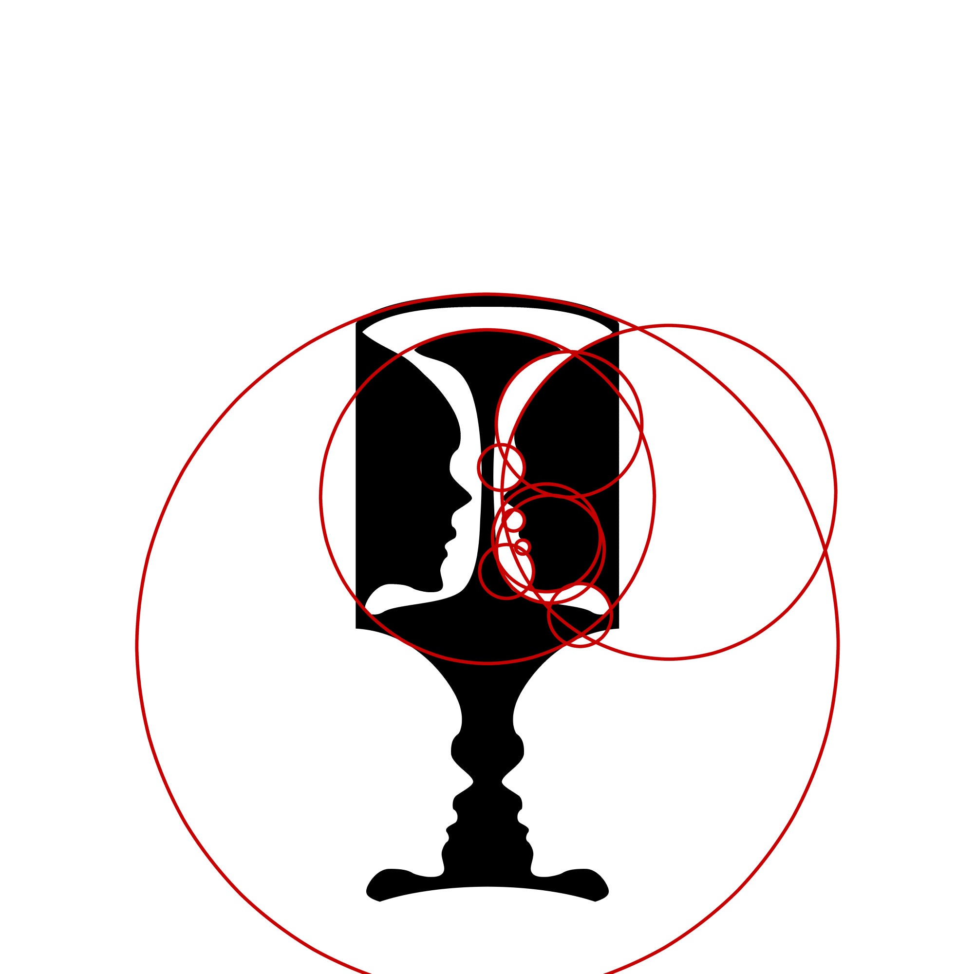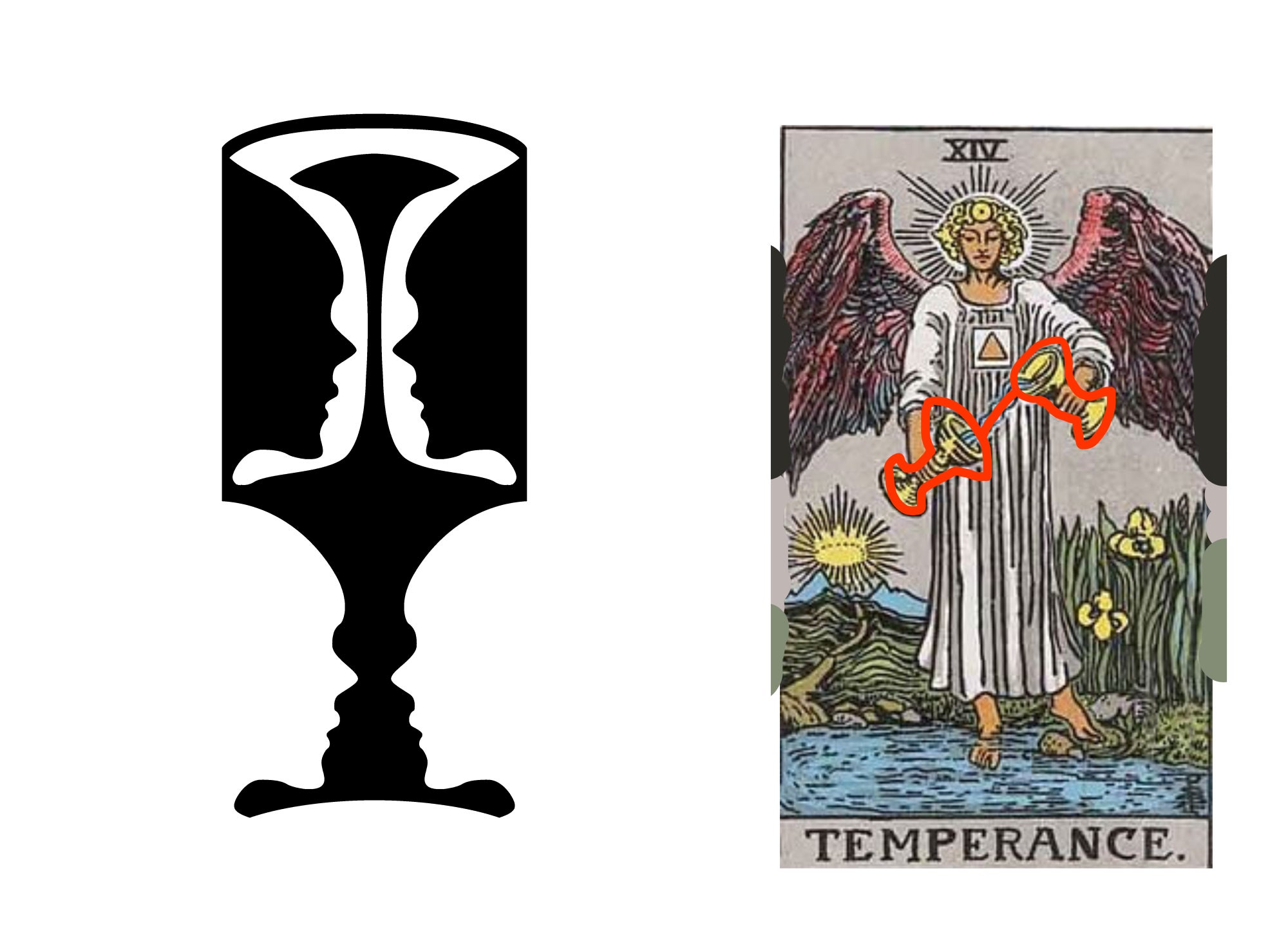 ルビンの壺。向かい合わせの人と羽を広げた天使