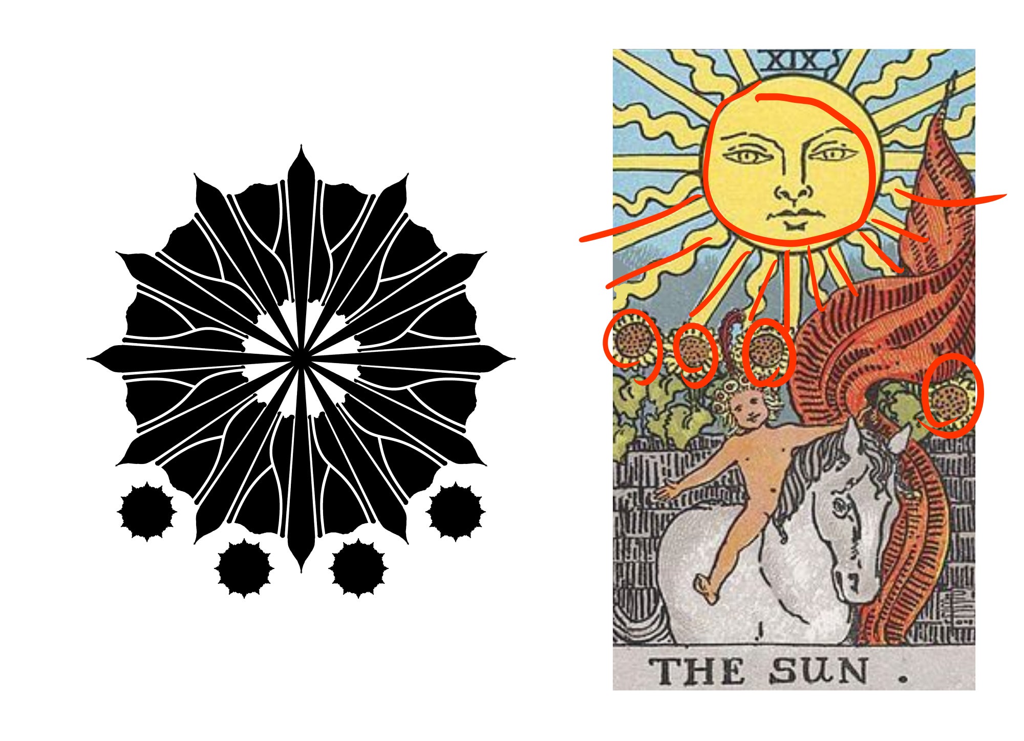 タロットの図案として扱う以上、正逆の判別が明らかになるよう作らねばならず、いくつかの紋はそこに苦心した。
