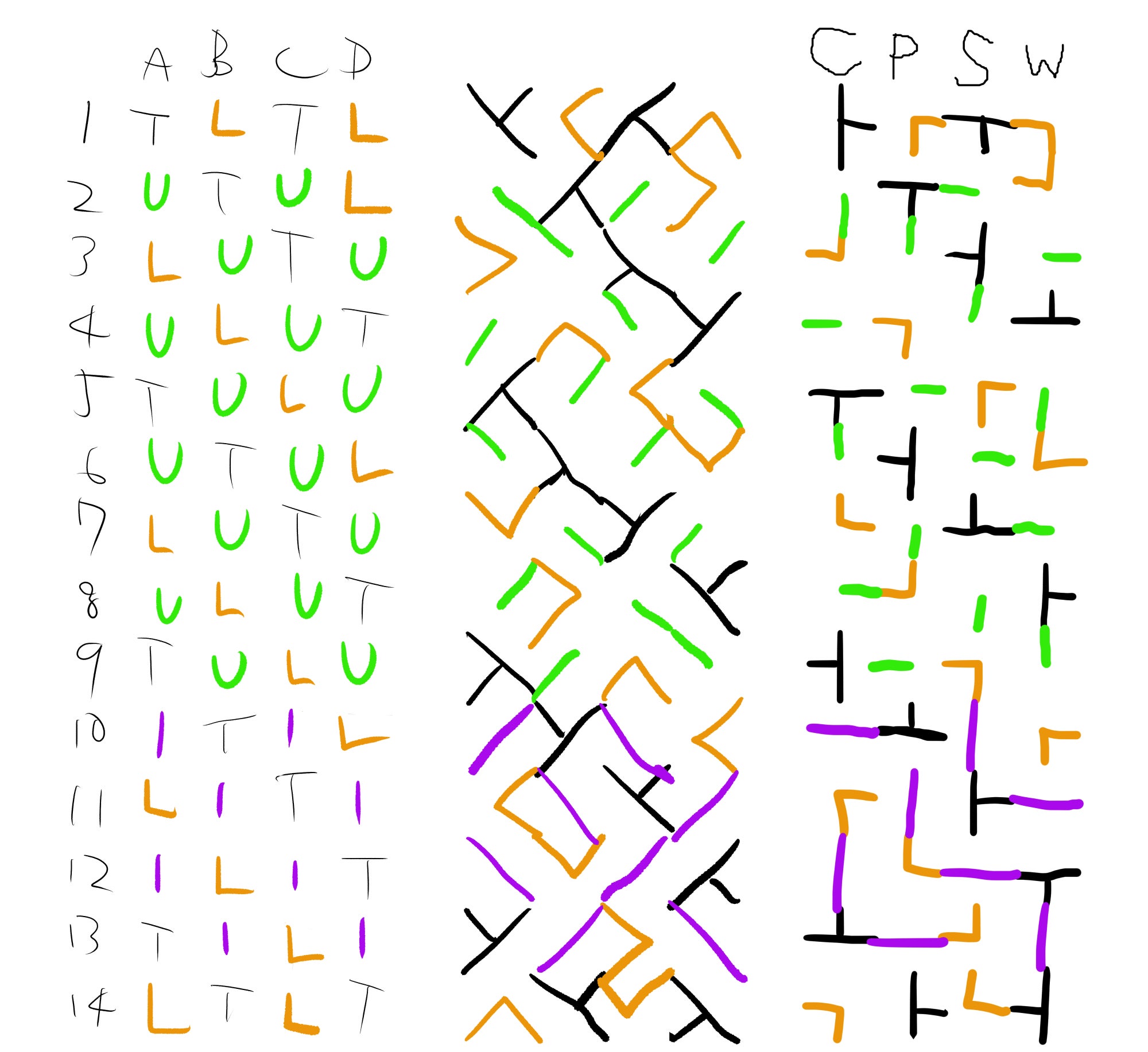 U、L、T、I字を小アルカナに充てる。路の被りが無いようにした。大アルカナは全て十字路。