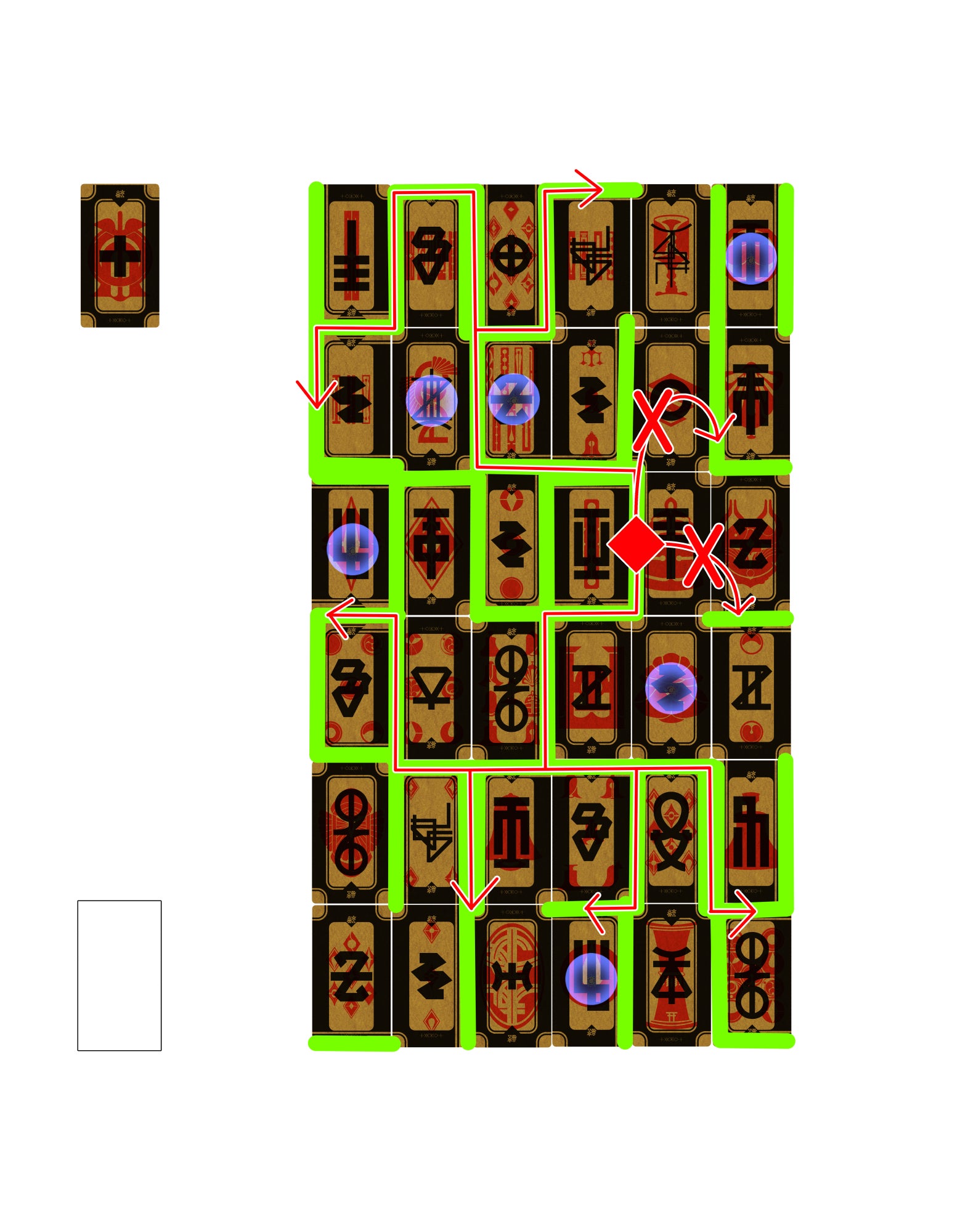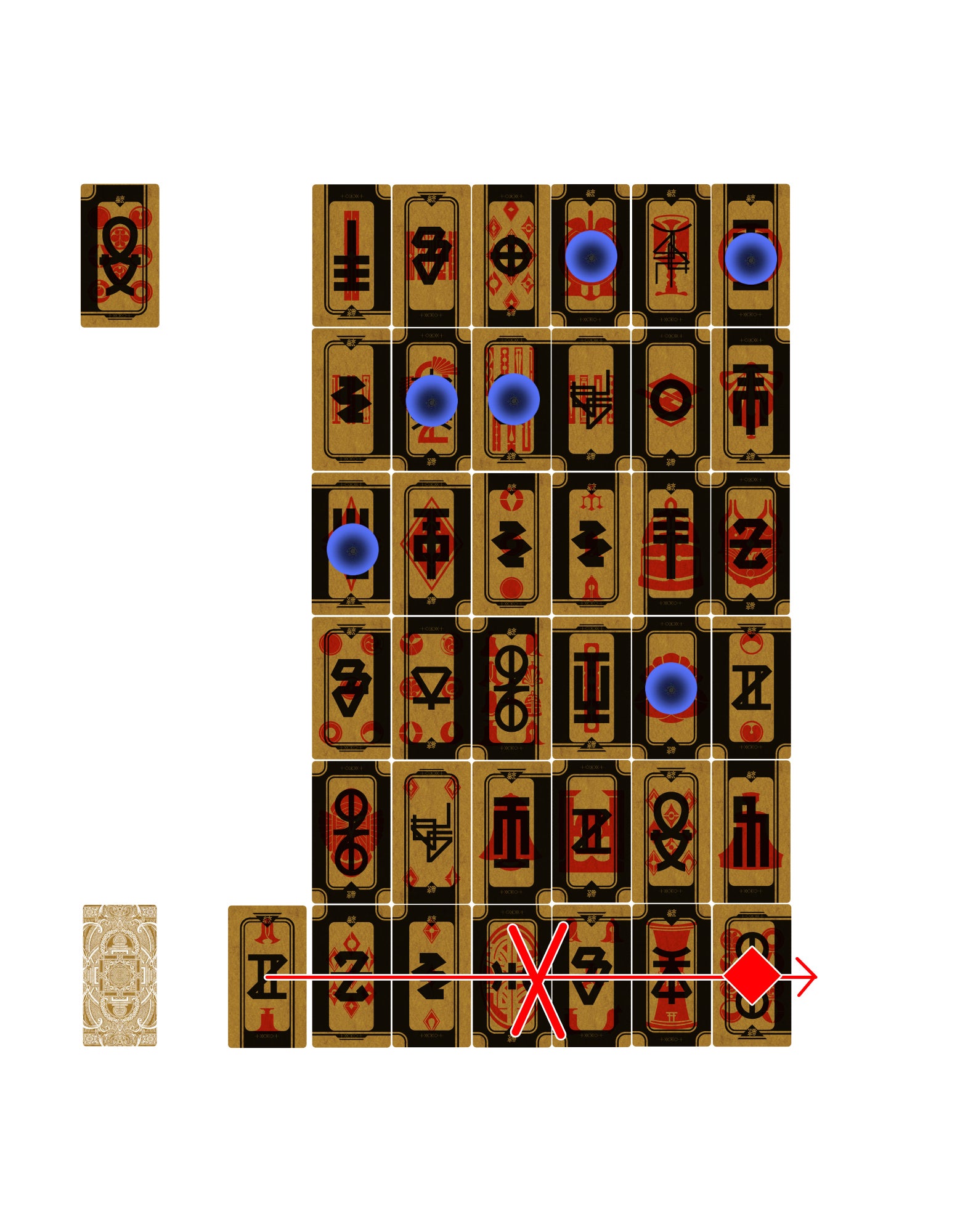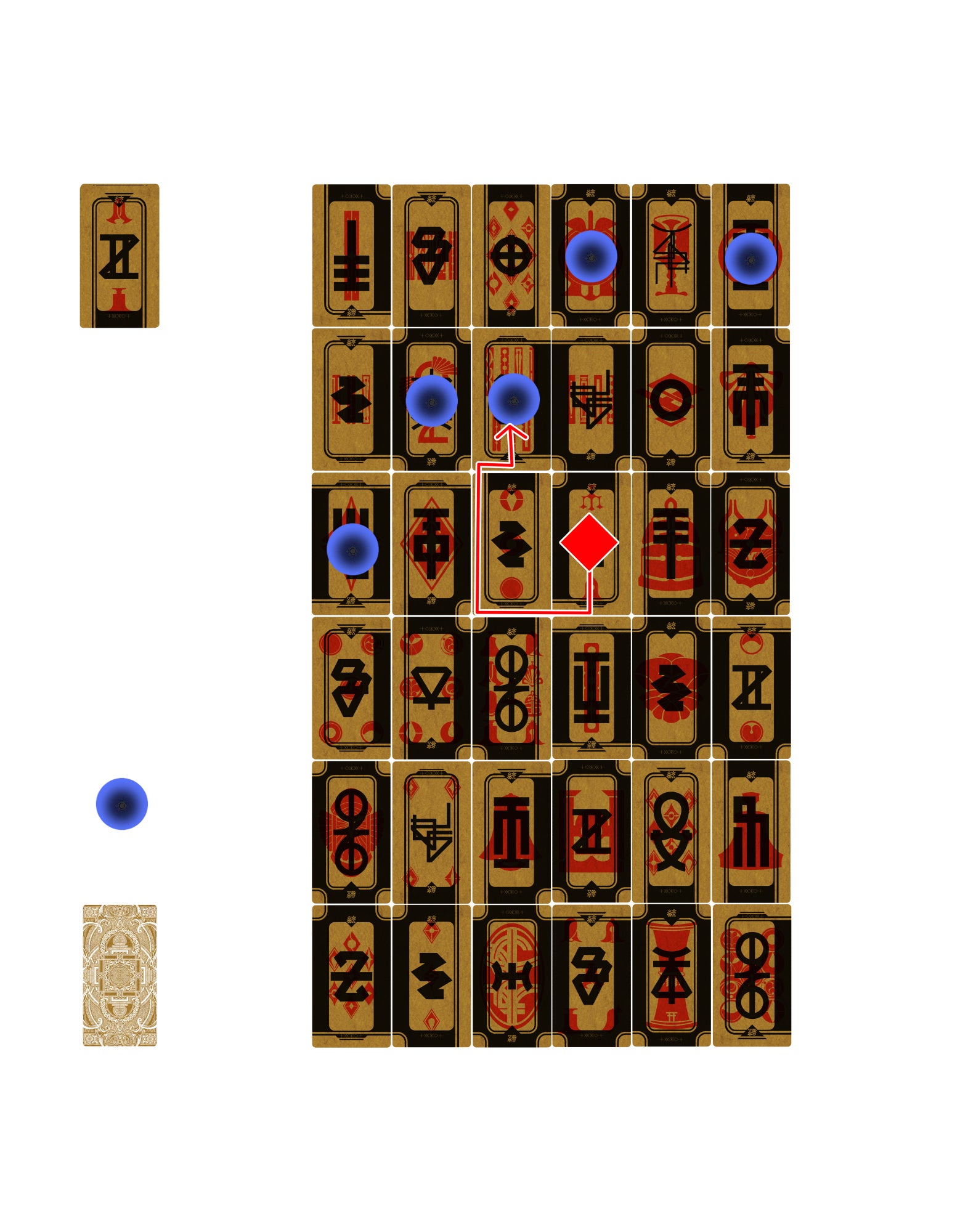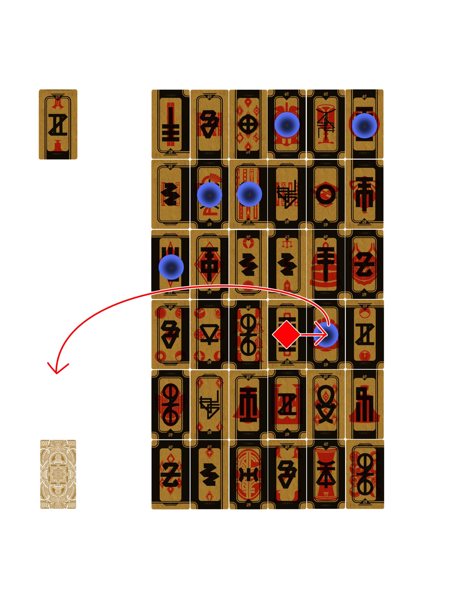 駒が路地に置かれている場合、駒が重なっている2枚の札を動かす事は出来ない。