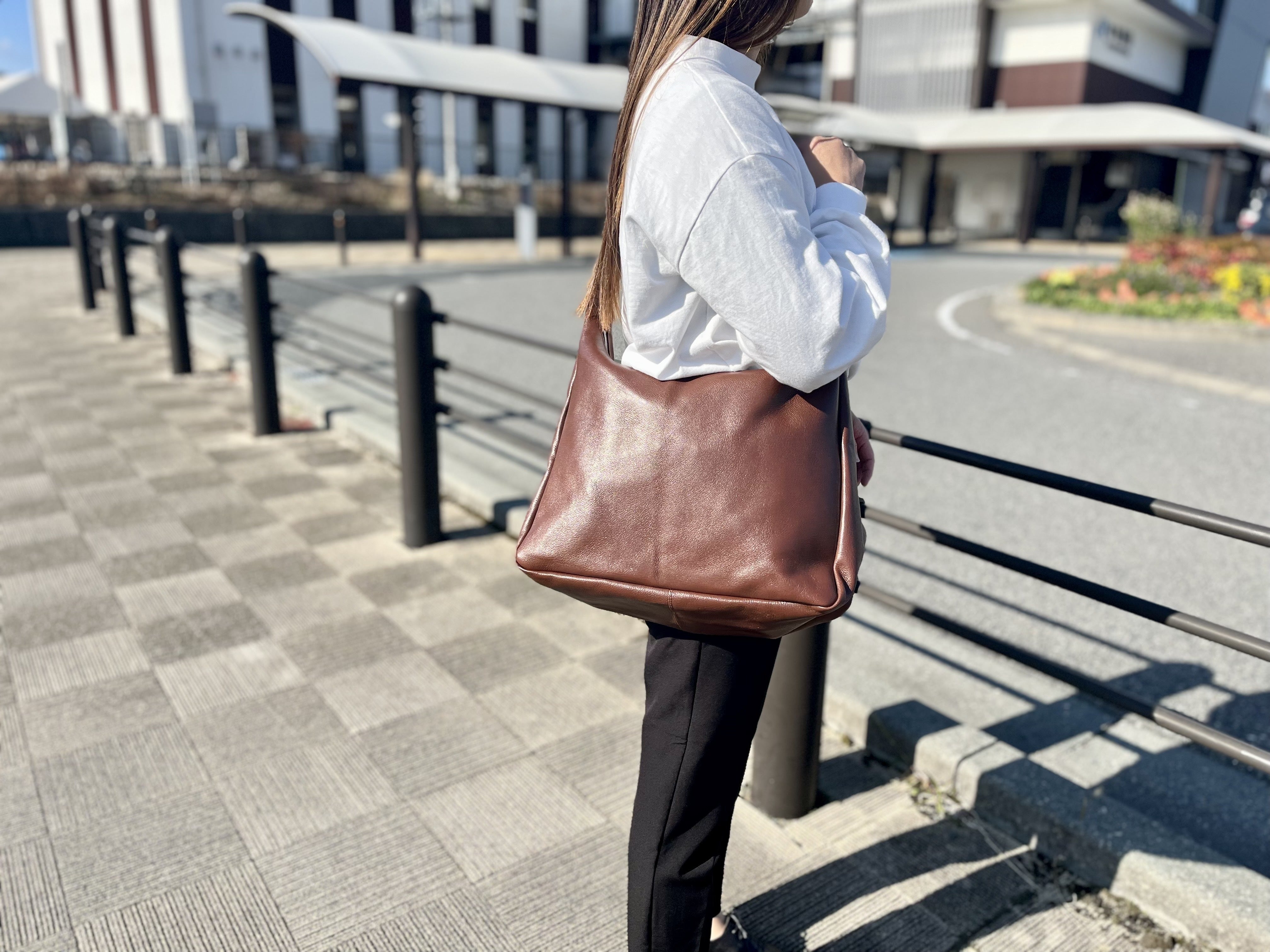今回の本革ラウンドショルダーバッグは、【大容量×スタイリッシュ】をテーマに普段使い~休日まであらゆるシーンで活躍できるよう制作しました。