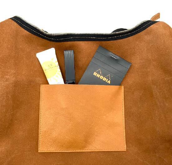 いつも少し気の利くバッグで在りたいと思っています。大きなバッグでは迷子になりがちな小物も出し入れしやすいように、中には小物用ポケットを。