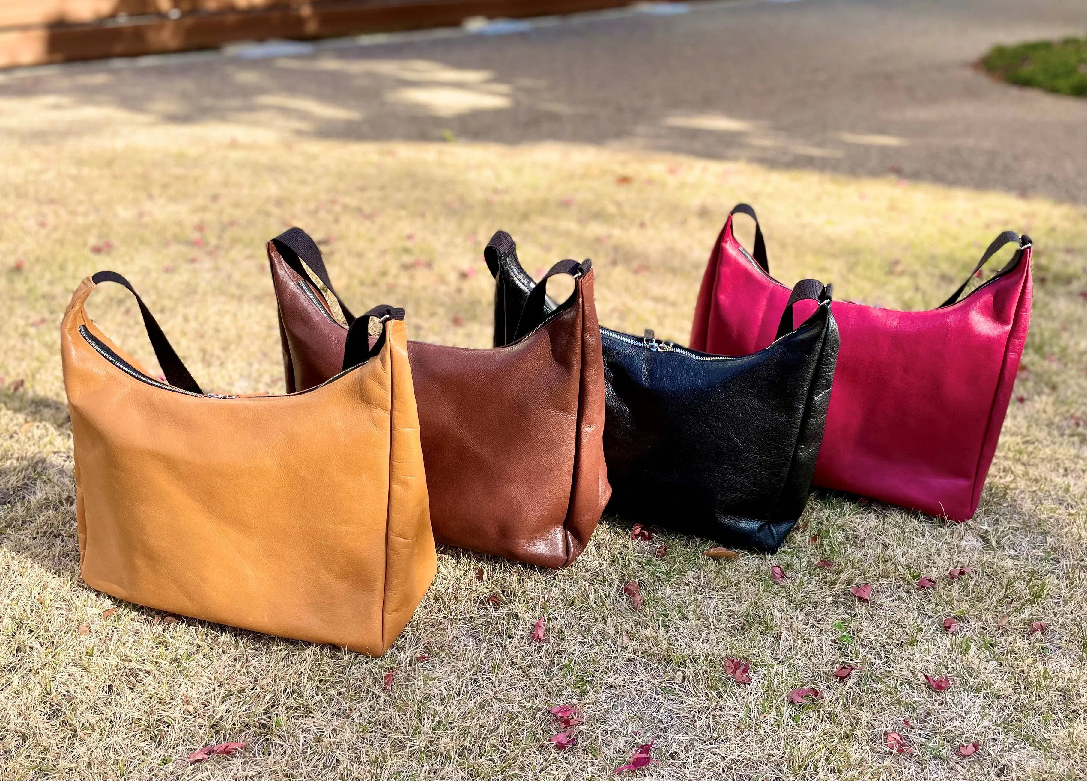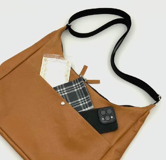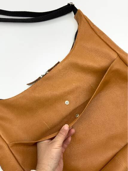 私がデッドストックのプロジェクトを実施する上で、革の持っている質感を生かすことをいつも心がけています。本革ラウンドショルダーに使用した革は、主に衣料革などに使われる軽くて柔らかい革です。持った瞬間から手に馴染み、肌に吸い付くような柔らかい使い心地を実感してください。