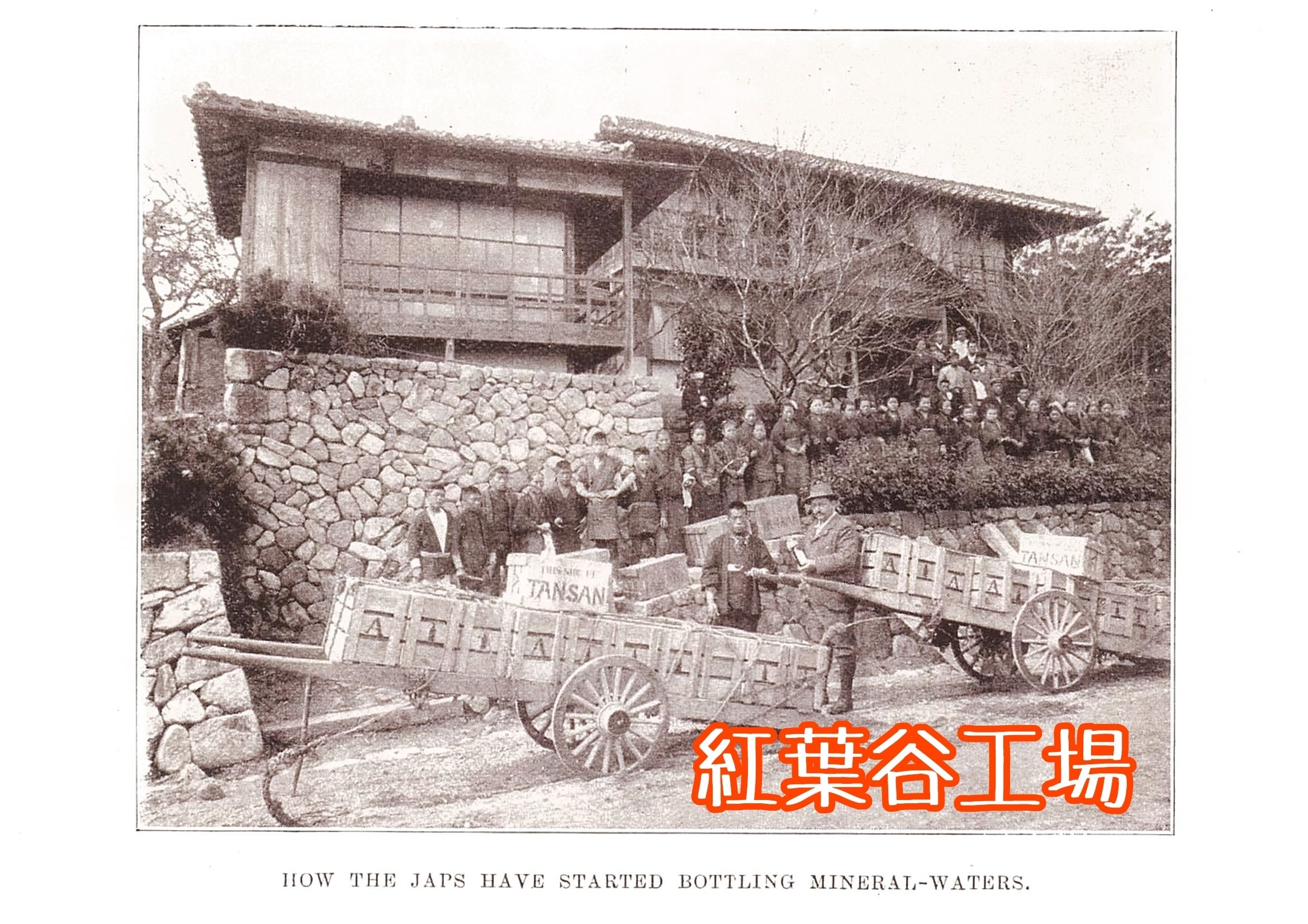 その翌年、その鉱泉から湧き出す「酸い水」を瓶詰めして炭酸水を発売することを思い立ち、宝塚の紅葉谷に瓶詰工場を設け、生産、販売を開始しました。