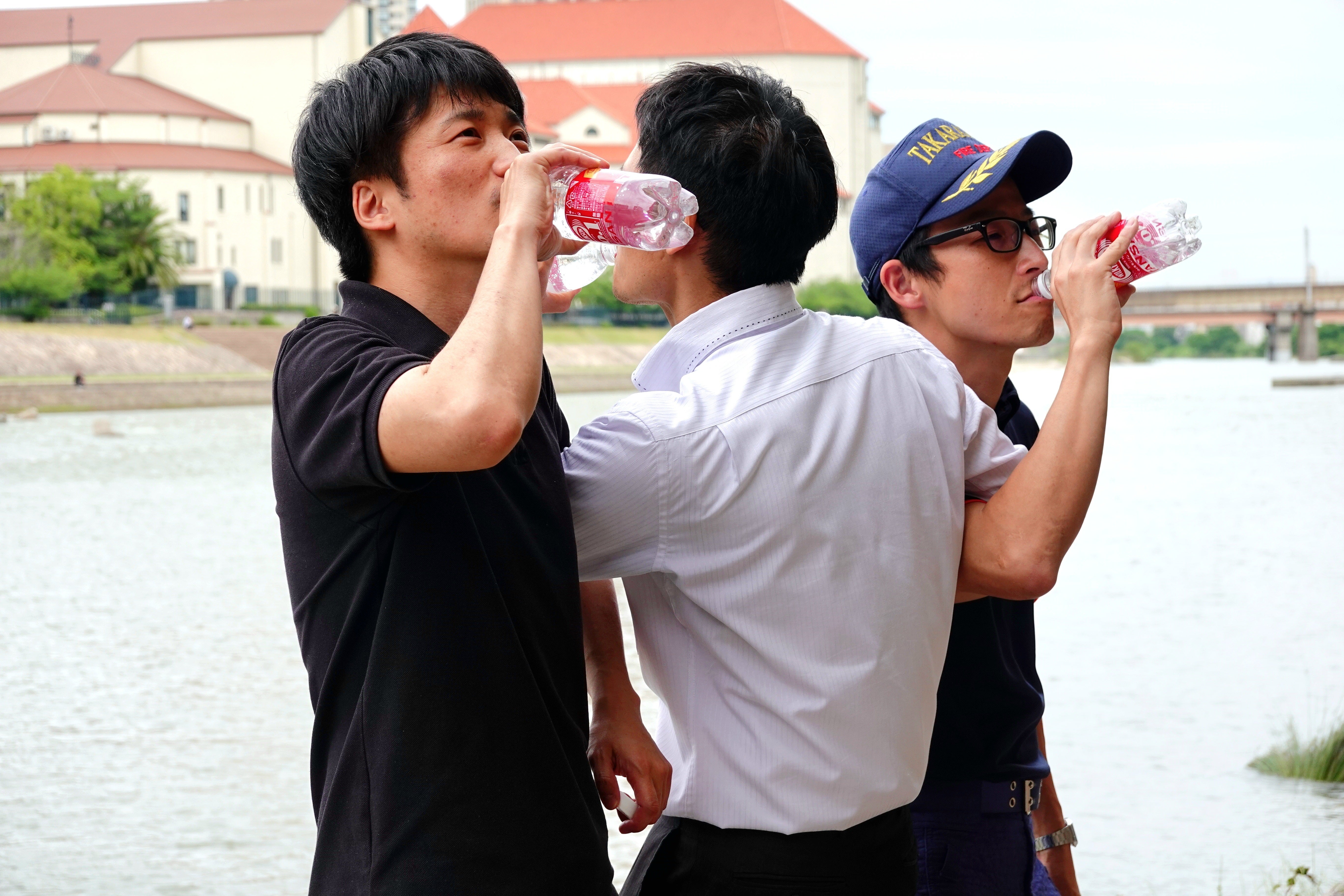 宝塚市発祥のウィルキンソン タンサンを片手に(炭酸水が苦手な方はお水でも可能です)、隣の人と交互に腕を組み、一斉に乾杯するという挑戦です!