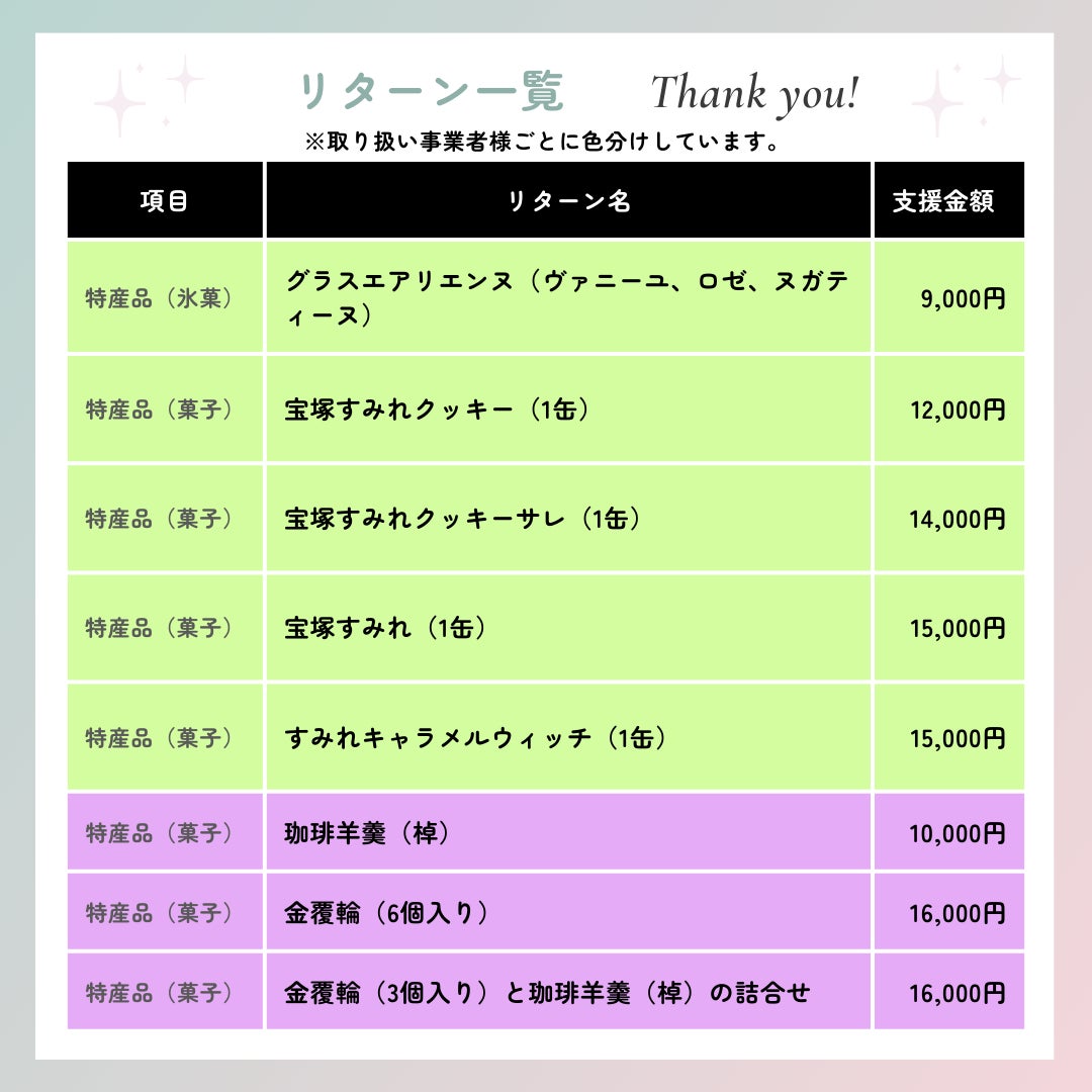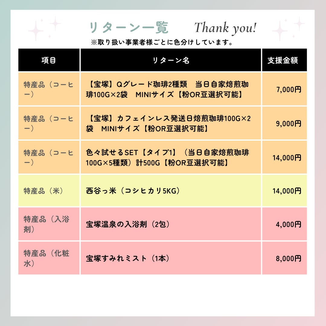 心ばかりではありますが、宝塚市ならではの特産品をご用意しました。