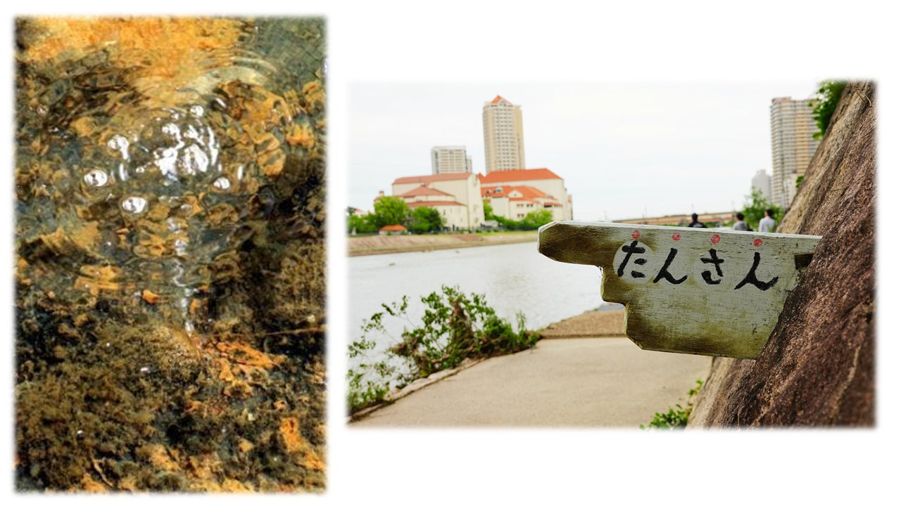 現在も気象状況によって、宝来橋のたもとからぷくぷくと炭酸気泡が湧き出る様子を確認することができます! ↓