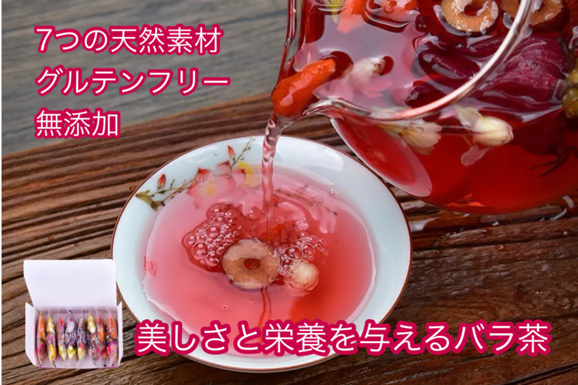 金橘玫瑰茶をはじめ、バラは、ビタミン A、 C、 B、 E、 K、およびタンニン酸などを含んでいます。