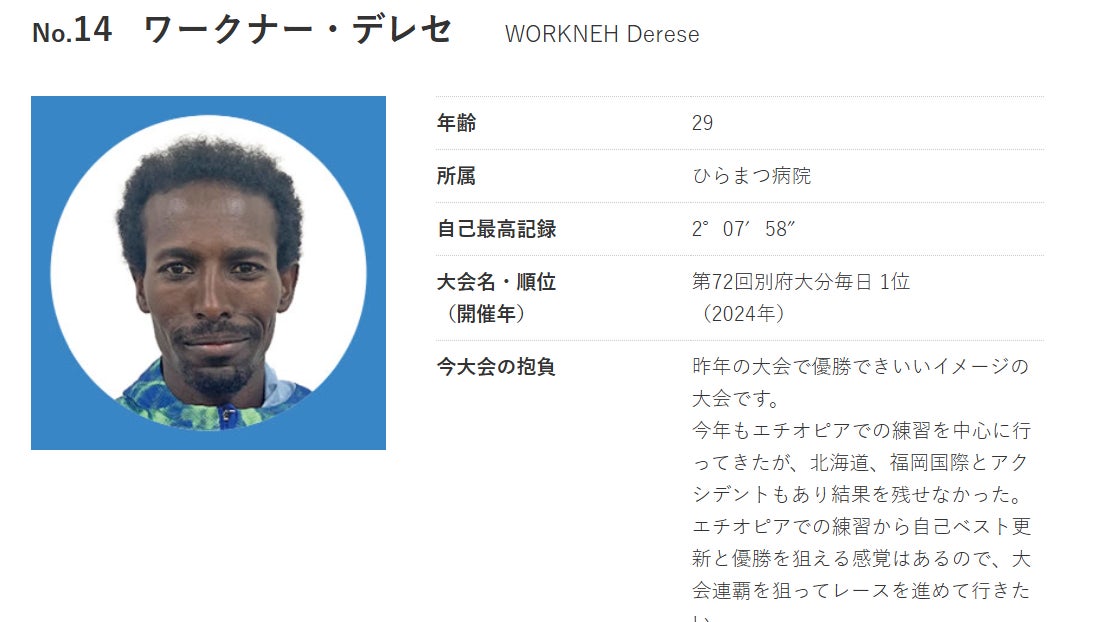 今度の日曜日、2月2日に、デレセさんが別府大分毎日マラソンに出場します。