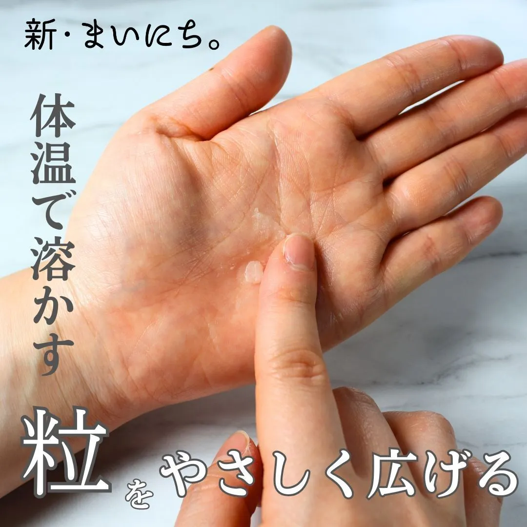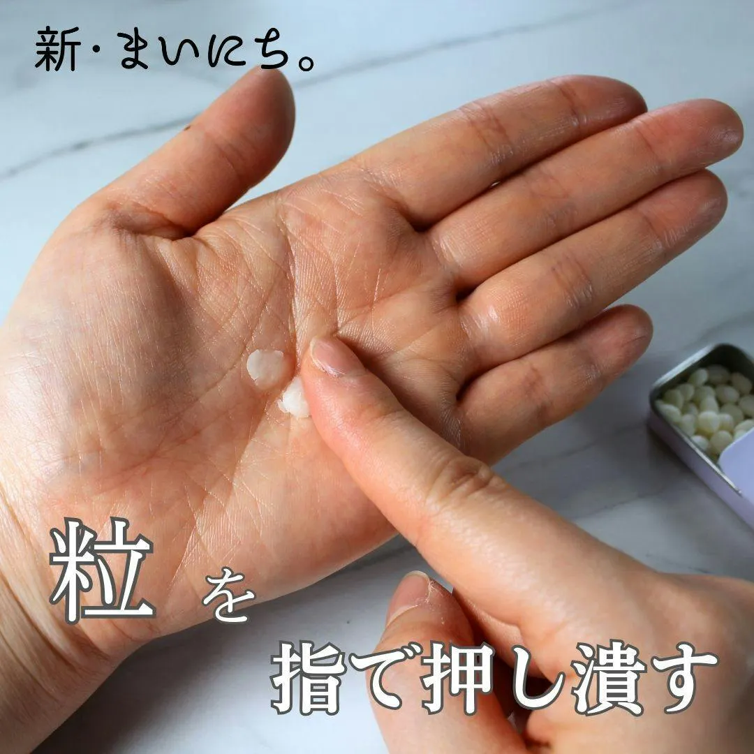 粒香水を1粒取り出し、手のひらや、指で押しつぶす。