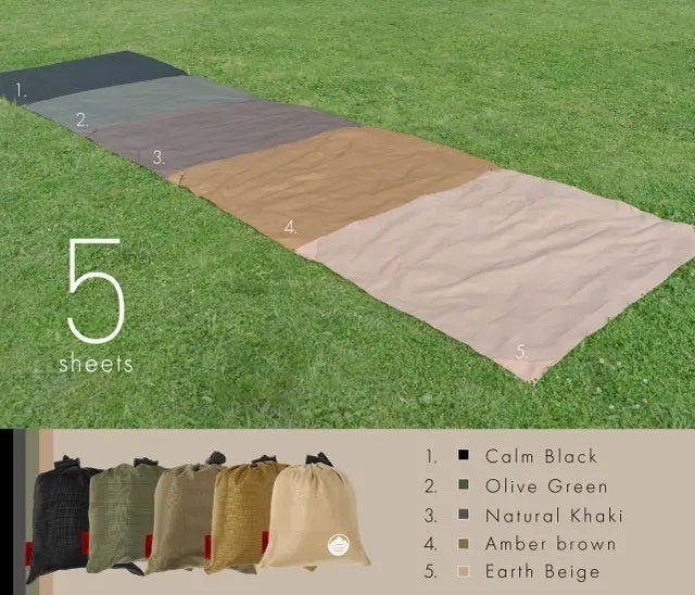 A:自然と調和するアースカラー6種類を用意させて頂きました。①オリーブグリーン ②アースベージュ ③アンバーブラウン④ナチュラル カーキ ⑤カームブラック⑥ライトアイボリー