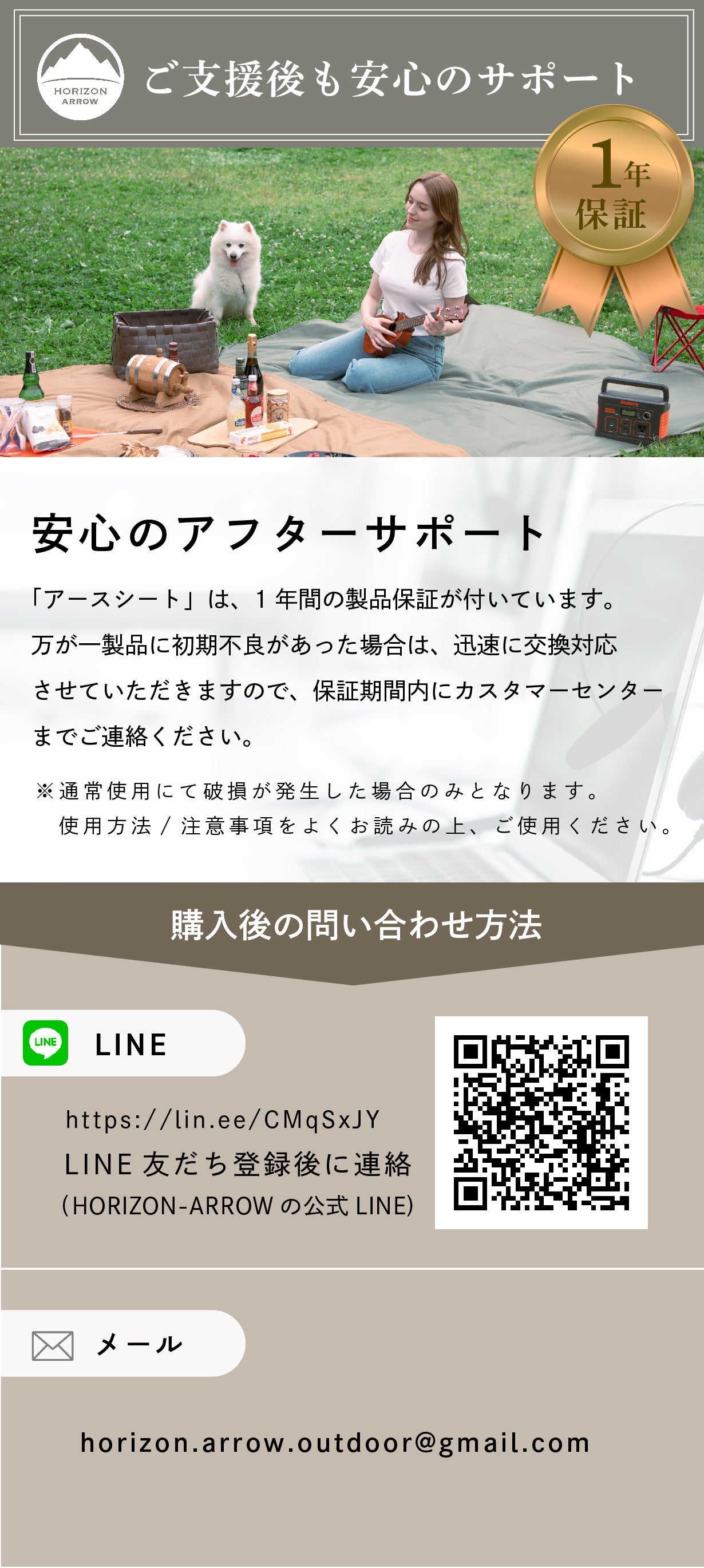 「HORIZON ARROW」のブランドミッションは、楽しいアウトドアライフを多くの方々が体験できるようにユニークで信頼性の高い商品・サービスを提供することです。この度、開発した 「アースーシート」をMachi-yaのプロジェクトにてスタートできることを大変嬉しく思います。