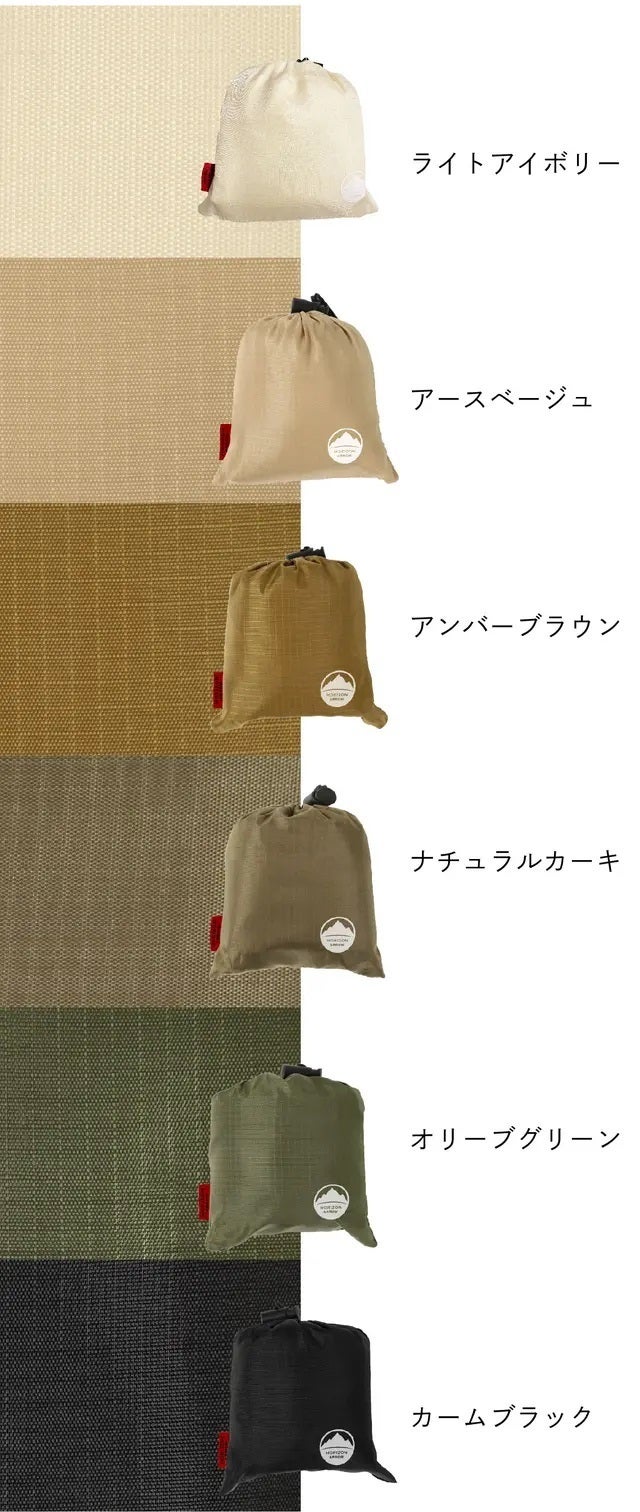 A:自然と調和するアースカラー6種類を用意させて頂きました。①オリーブグリーン ②アースベージュ ③アンバーブラウン④ナチュラル カーキ ⑤カームブラック⑥ライトアイボリー