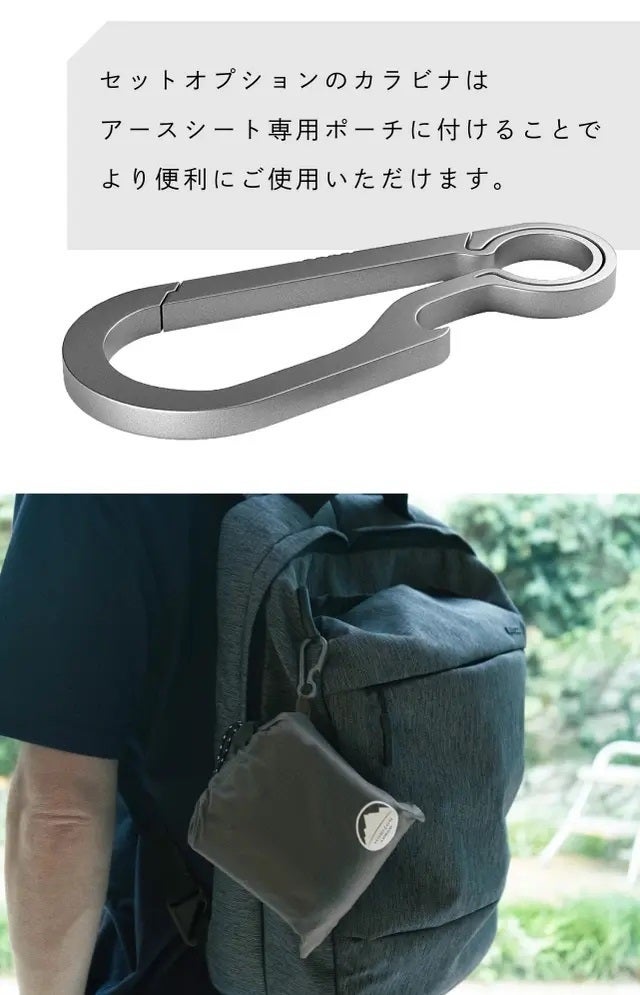 A:全てに付いてません。チタンカラビナセットをご購入下さい。 様々な場面で非常に重宝するアイテムになります。