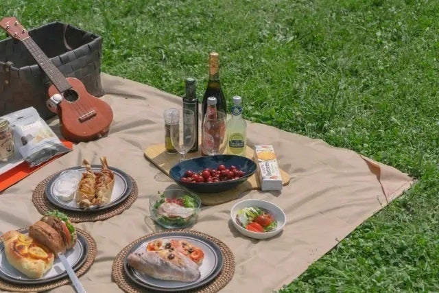 芝生の上にアースシートを敷いてお弁当を食べたり、昼寝したり