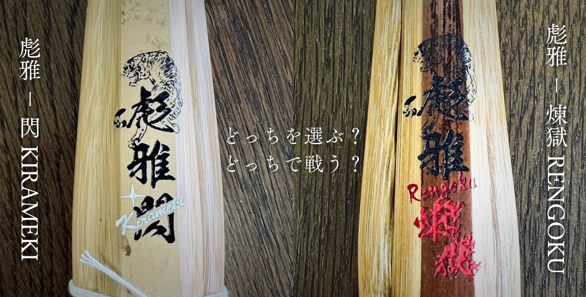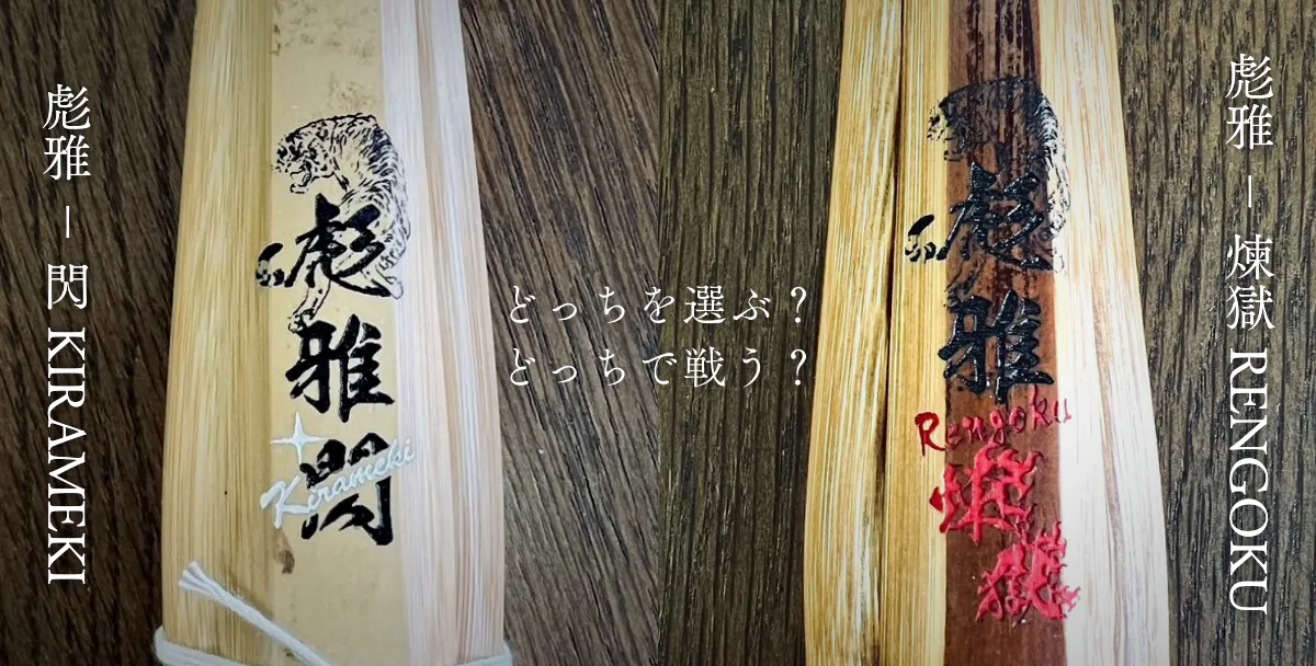 圧倒的なフィット感を実現した左手八角・右手小判の「彪雅 - 閃 KIRAMEKI」、右手小判の炭化竹刀を更に強化し黒刀へと進化させたパワフルな「彪雅 - 煉獄 RENGOKU」。