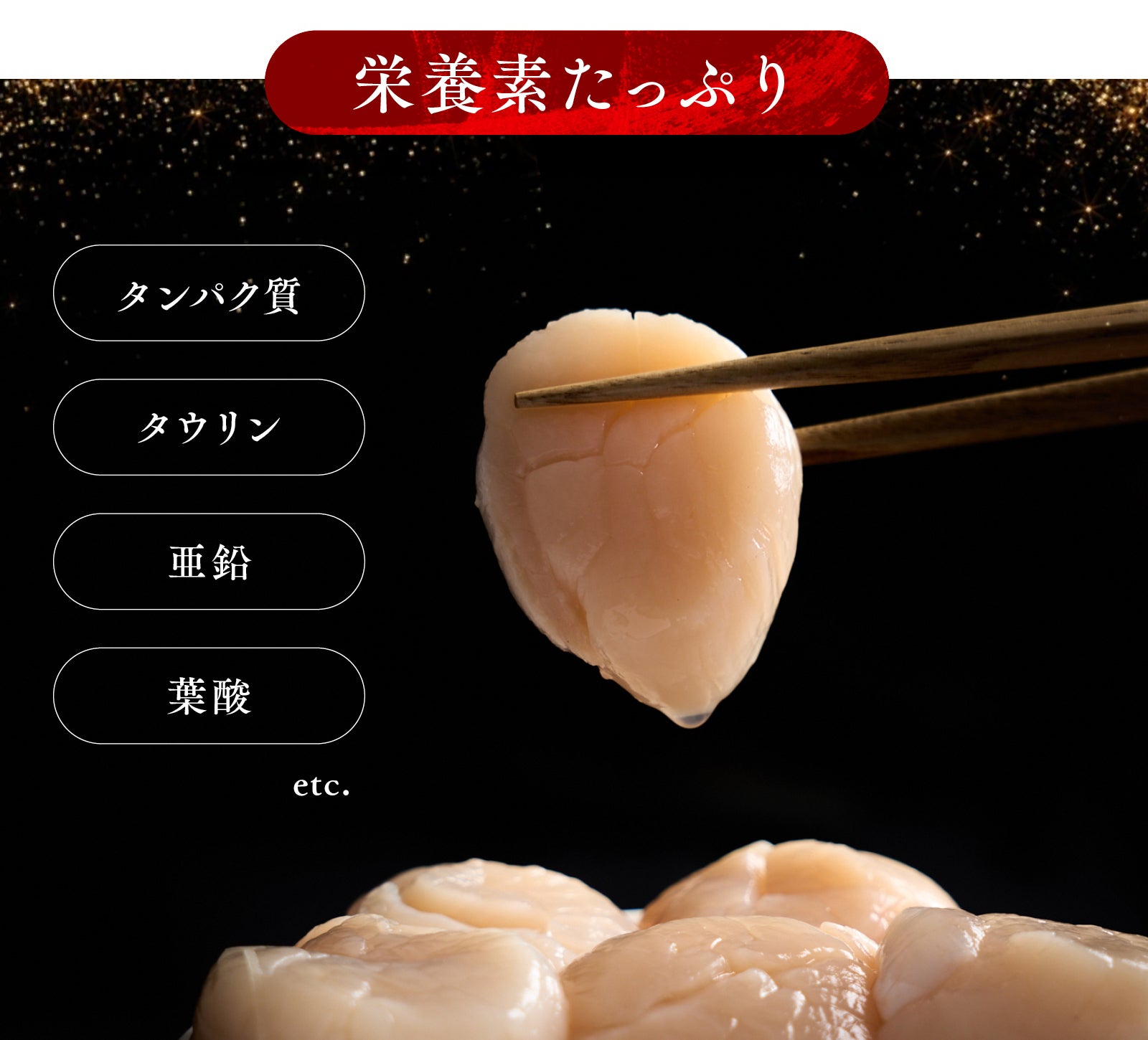ホタテにはタウリンや亜鉛、葉酸などの様々な栄養素が豊富に含まれています。