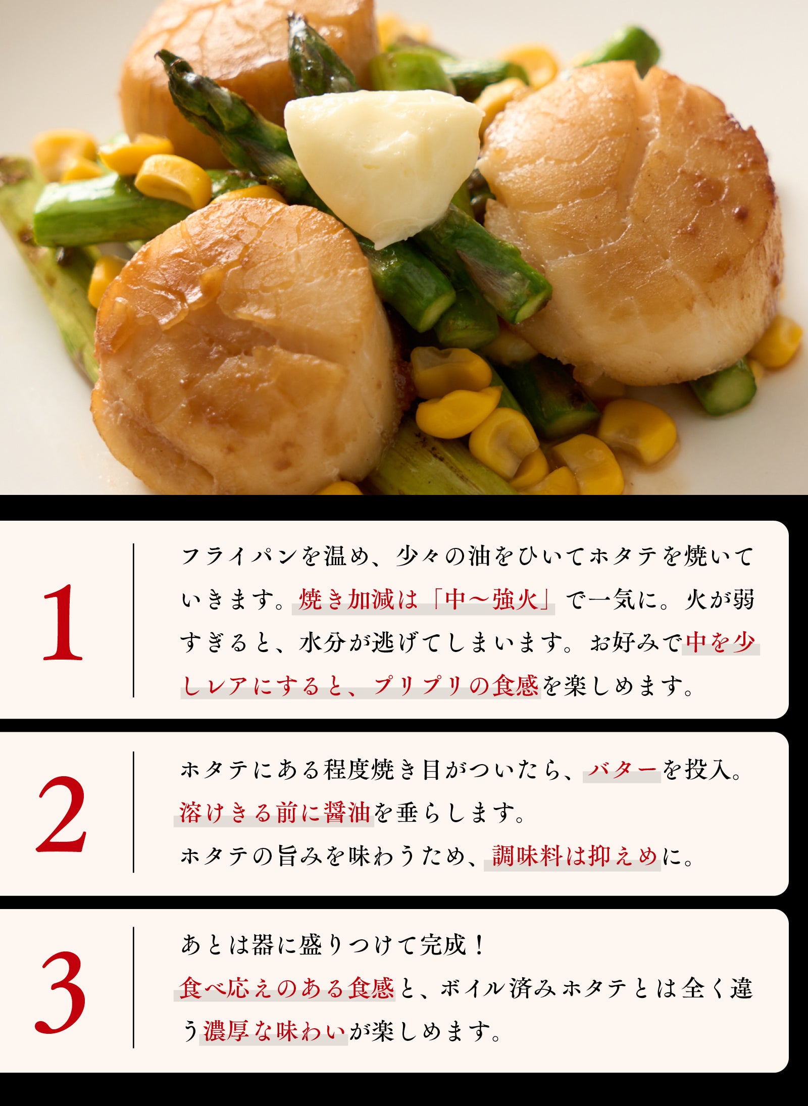 ホタテの濃厚なコク、食欲をそそるバター・醤油の香りを是非ご堪能下さい!