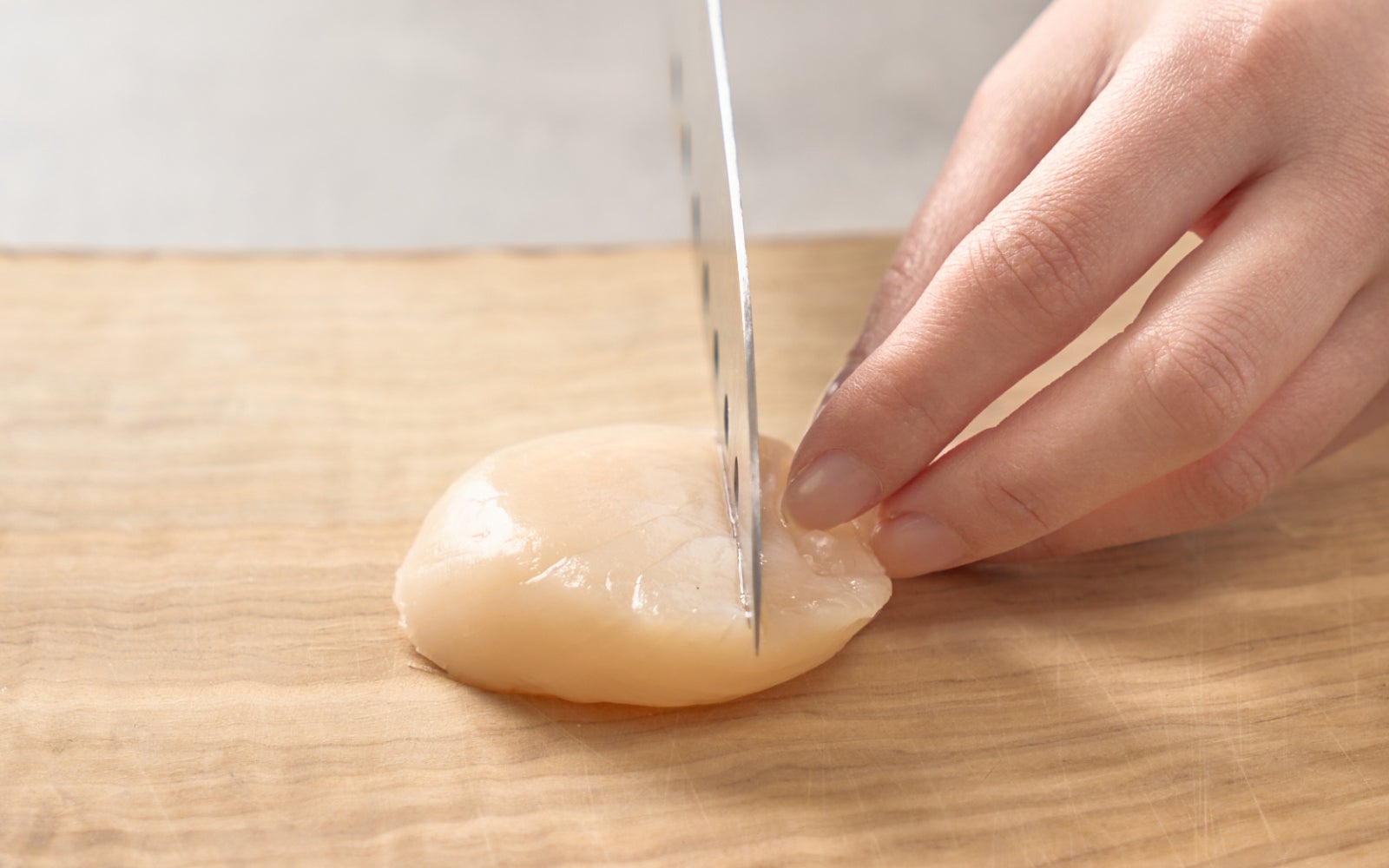 貝柱を縦に切ることで、繊維質を壊さずに調理できます。食べる時も縦に噛むことで、より一層歯応えを感じられます。