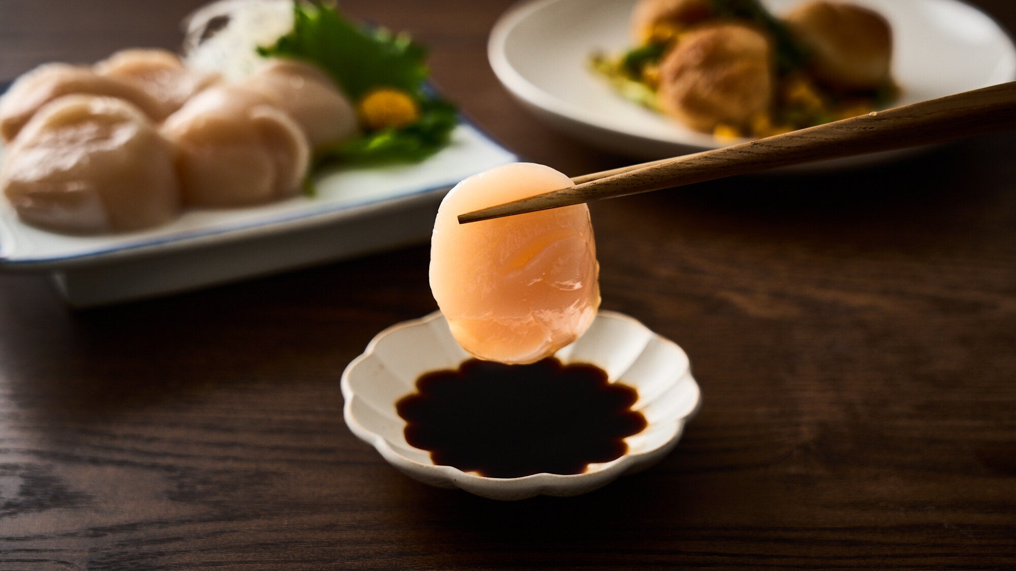 貝柱を横に薄く切ることで、柔らかでとろけるような食感を味わえます。