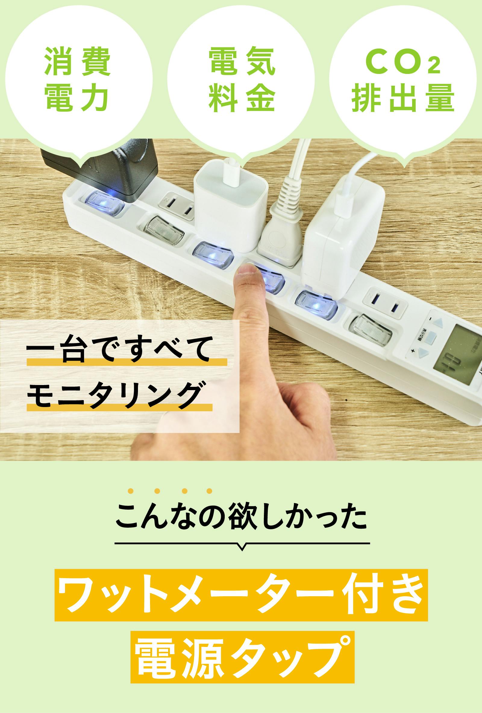 今回提案する『ワットメーター付き電源タップ』は、昨今の電気代高騰から「電気代が可視化できる電源タップがあったらいいな」という社内での会話をきっかけに誕生した商品です。どのご家庭にもあるお馴染みの「電気タップ」に、消費電力・電気料金・CO2排出量が一目で分かるメーターを設置。電化製品一つひとつの数値はもちろん、全口累計表示によりタップ全体の数値もモニタリング可能なので、特定のエリアやお部屋の電気使用状況も把握することができます。