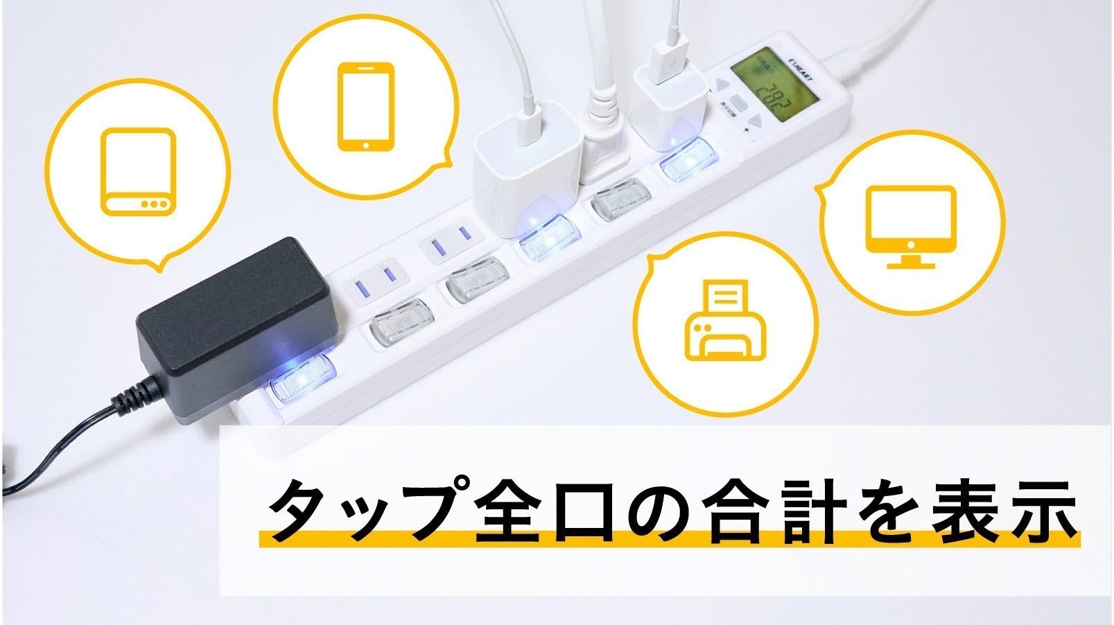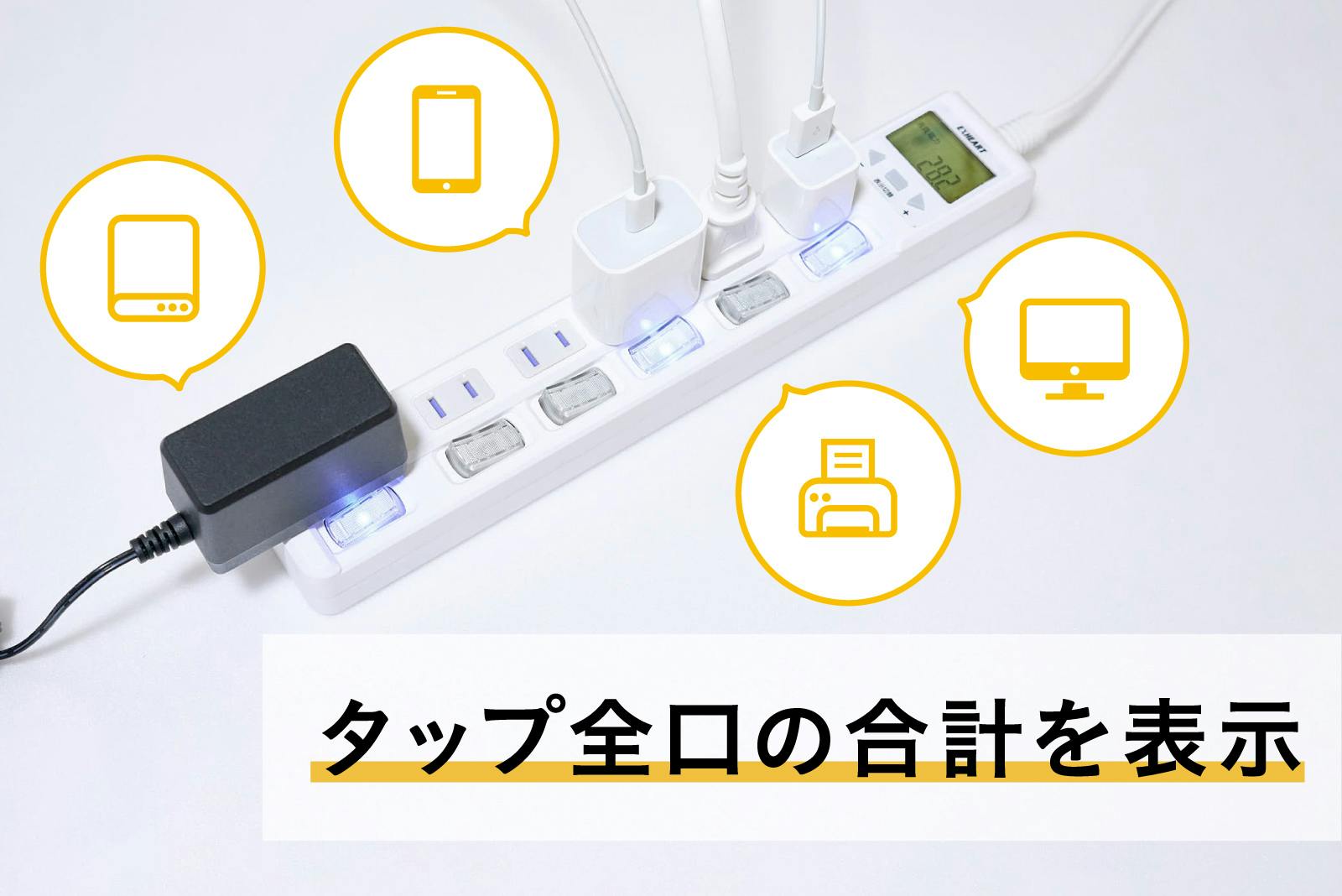 電源タップに接続されている電化製品すべての数値を合計した「累計表示」も可能。