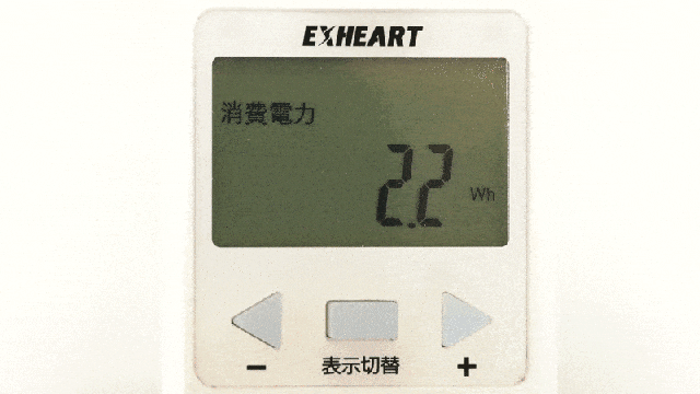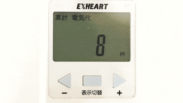 「表示切替」ボタンを押すごとに、使用時間→消費電力→電気料金→CO2排出量が表示されます!