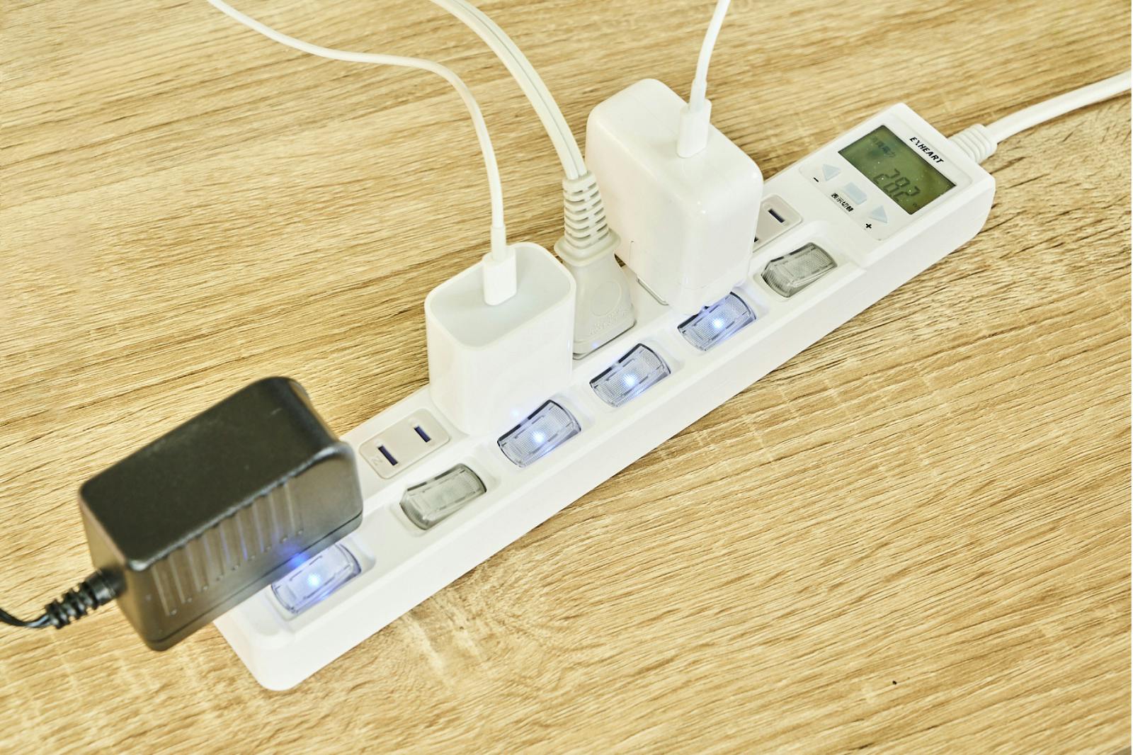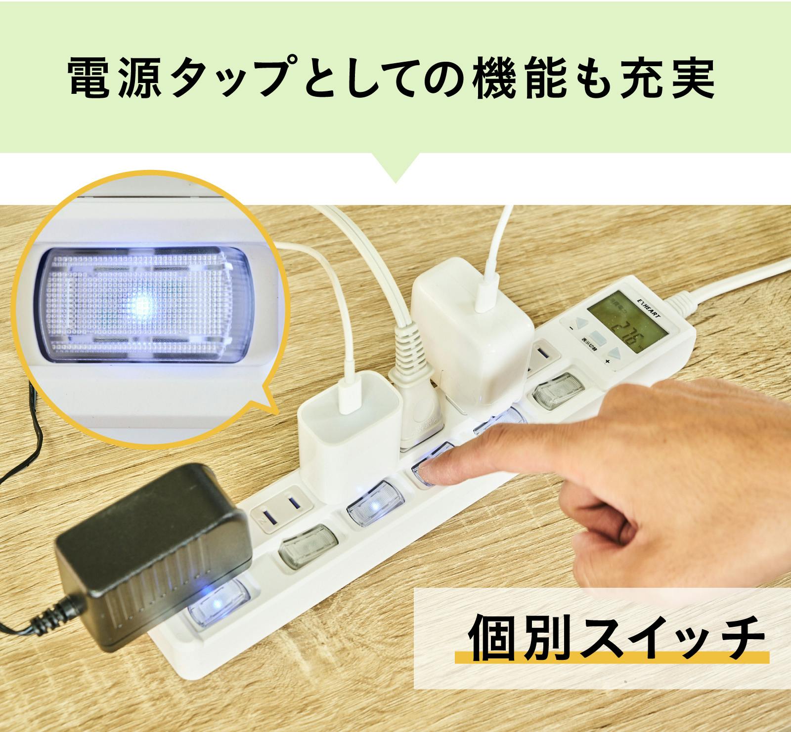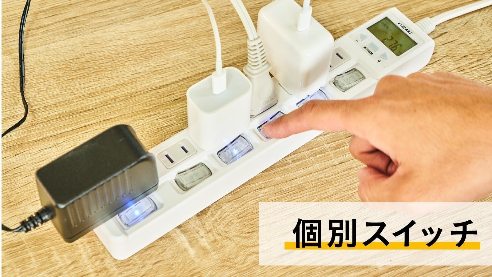 使用している電化製品それぞれの通電状況が分かる個別スイッチを搭載。待機電力の把握も可能です。
