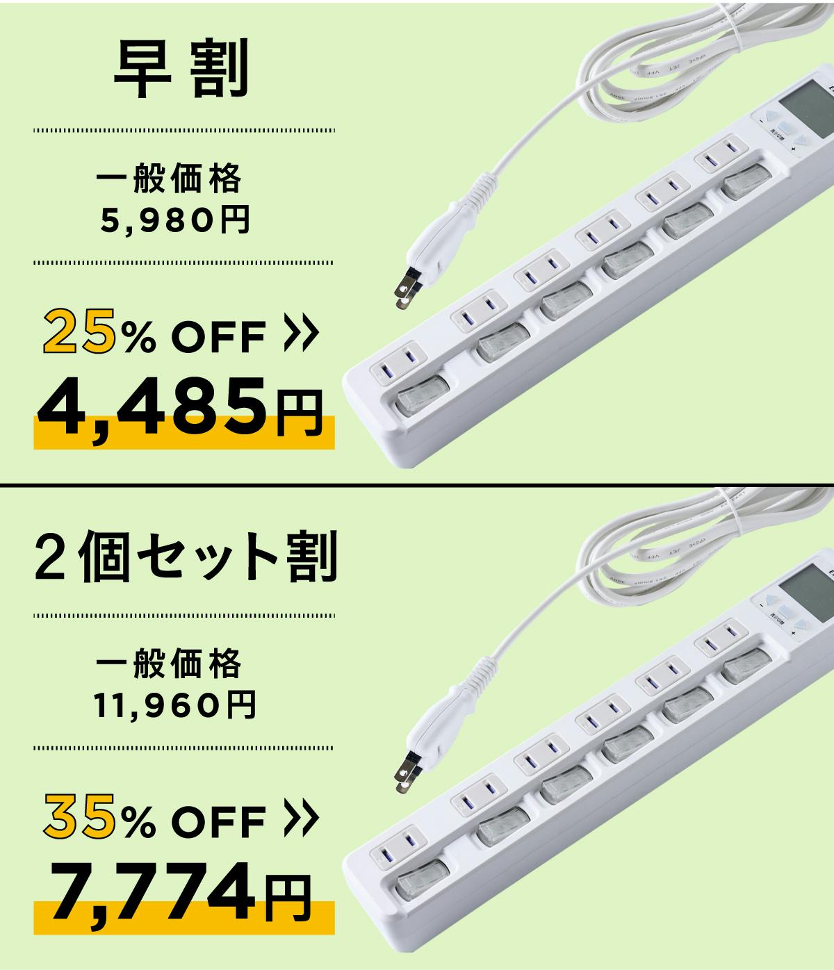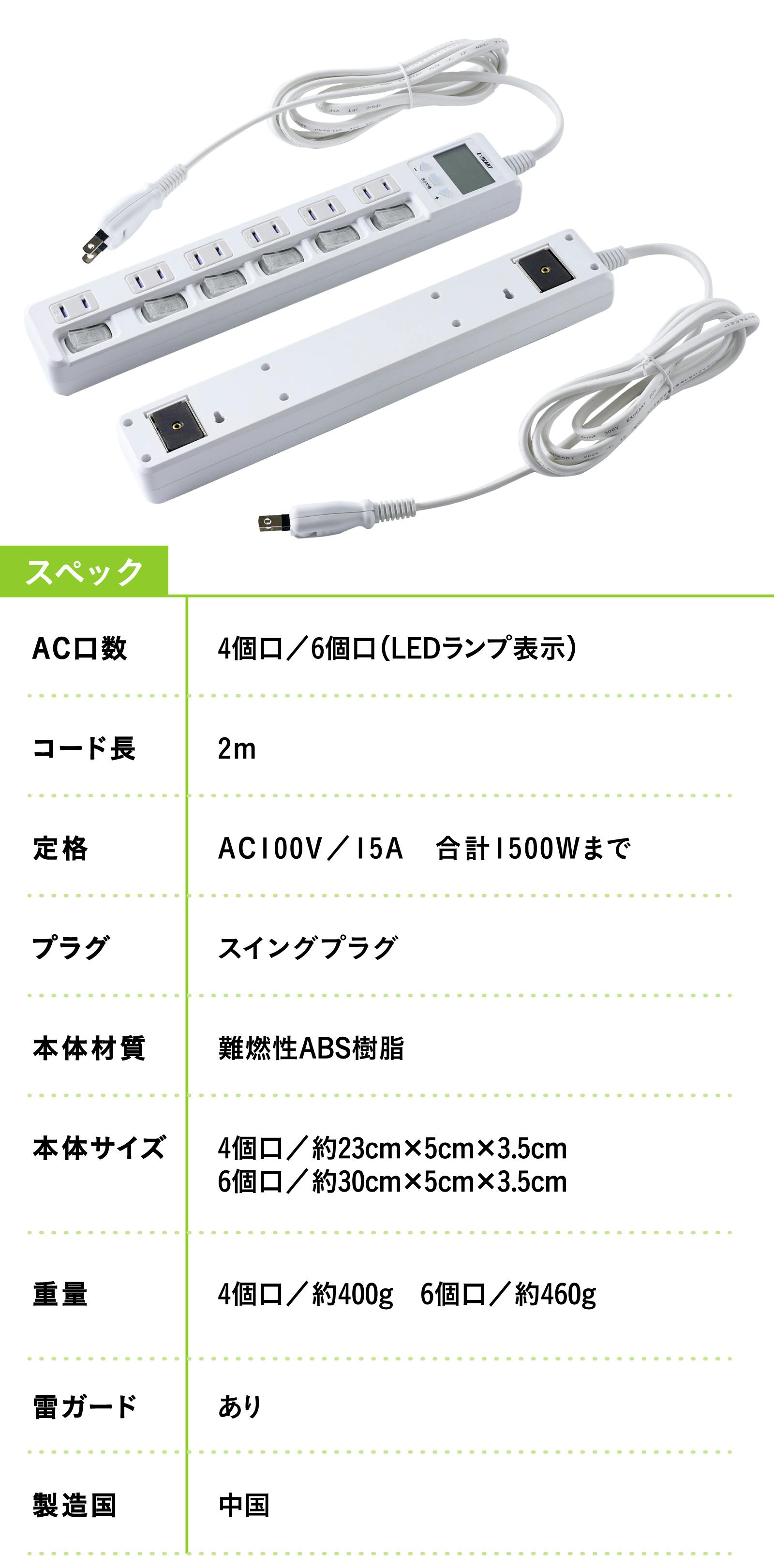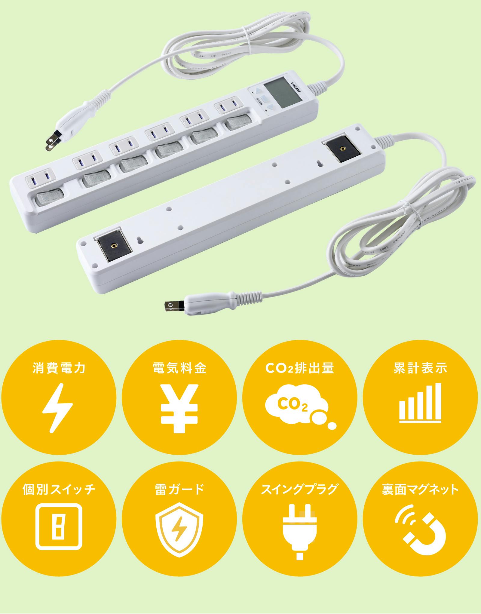 使用している電化製品それぞれの通電状況が分かる個別スイッチを搭載。待機電力の把握も可能です。