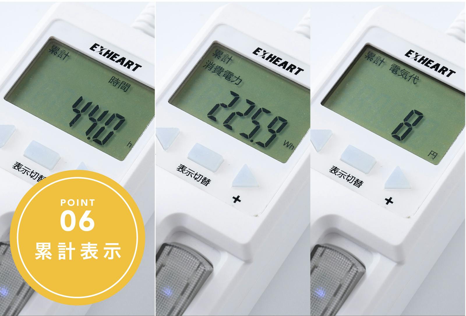 メモリー機能により、使用時間、消費電力・電気料金は使用からの累計表示も可能!