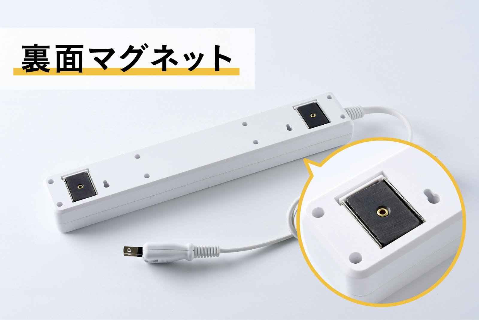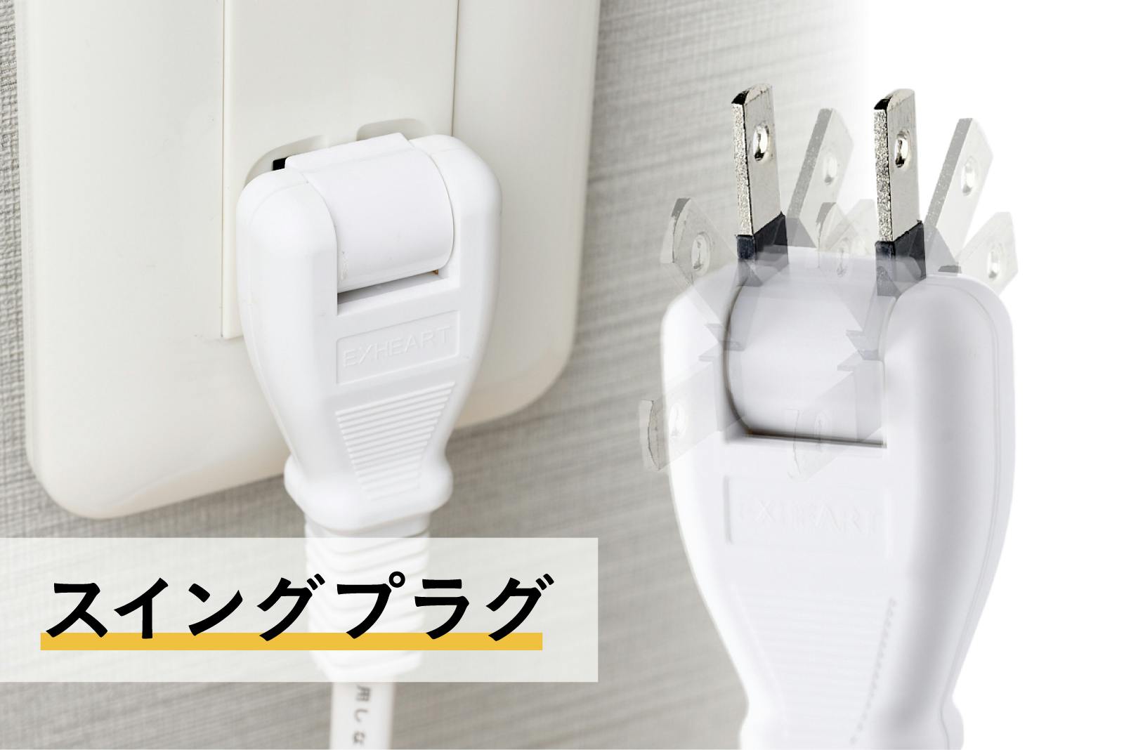 180℃自在に回転するスイングタイプのプラグ。狭いすき間でも配線しやすいので、場所を選ばず使用できます。