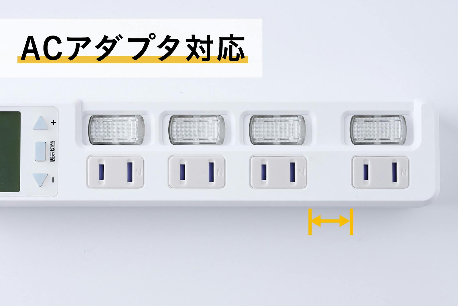 隣との幅を広げた差し込み口もあるので、テレビやパソコンなど大き目のACアダプタでもご利用できます。