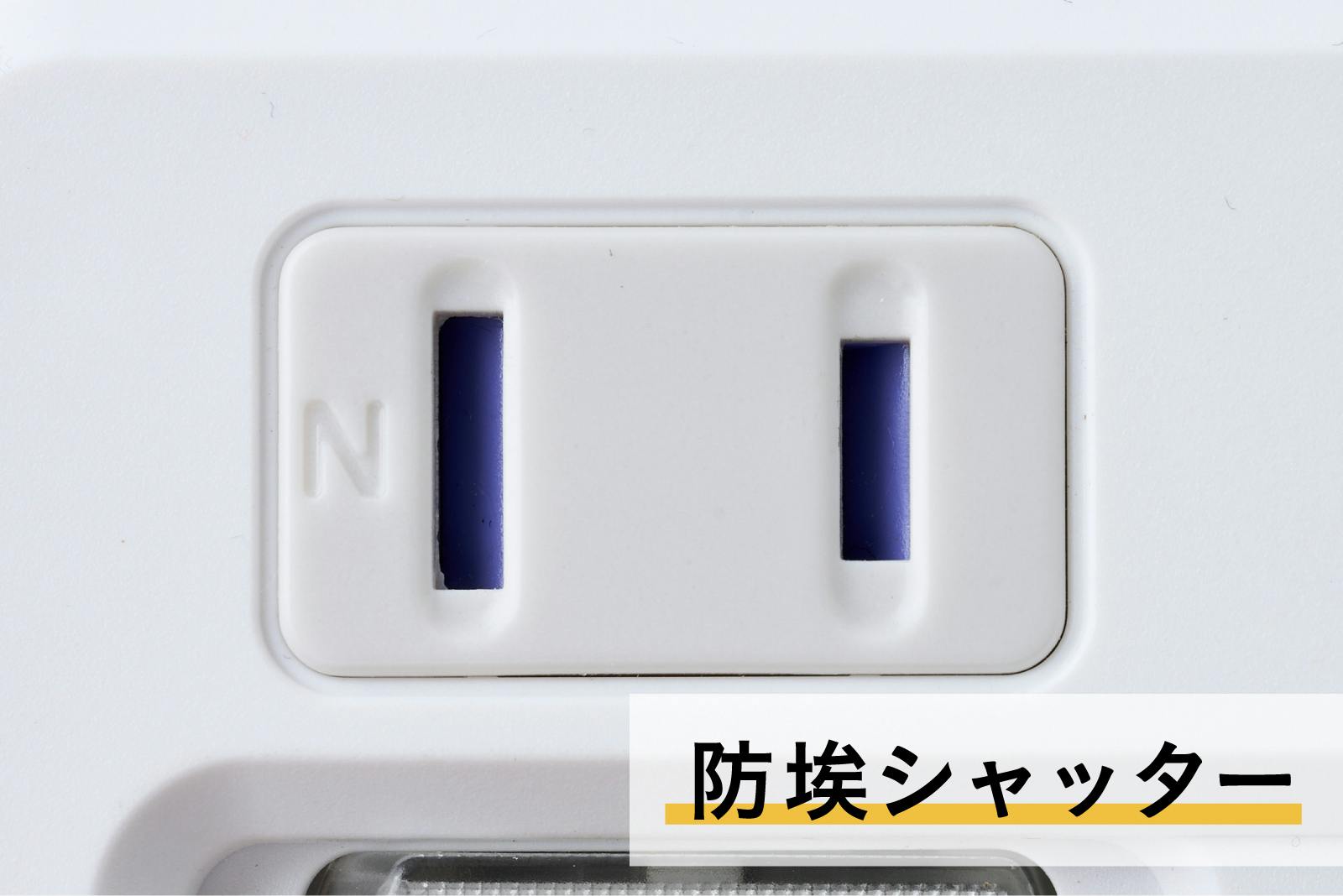 熱に強い難燃性ABS樹脂を採用した差し込み口には、ゴミや埃の侵入を防ぐシャッターも付いています。