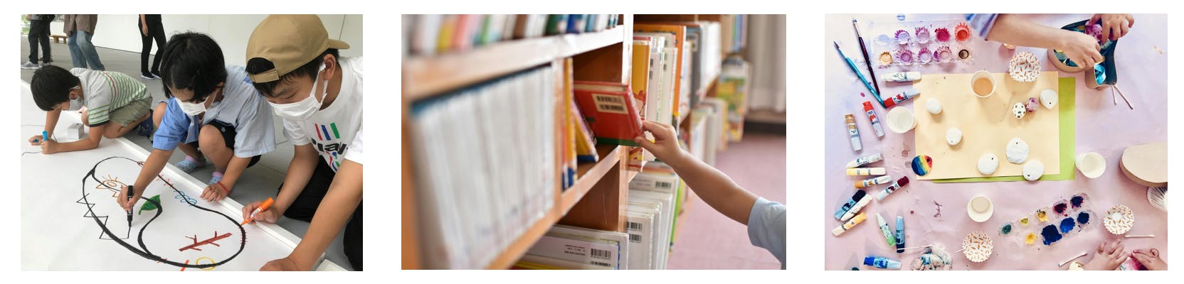 ・お絵描きコーナーの画材や枠組み/屋外図書館の書籍購入や本棚作成/会場施設の使用料/出店ブース用のテント等のレンタル/会場レイアウト(風船/シャボン玉/音響)等