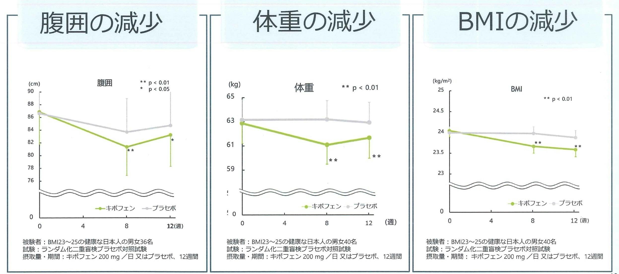 つまり、脂質の吸収を抑制することにより、BMIが高めの方の、体脂肪・腹部周囲長を低下させる機能、およびBMIが高めの方の、体重の減少をサポートし、高めのBMIを改善する機能が報告されています。