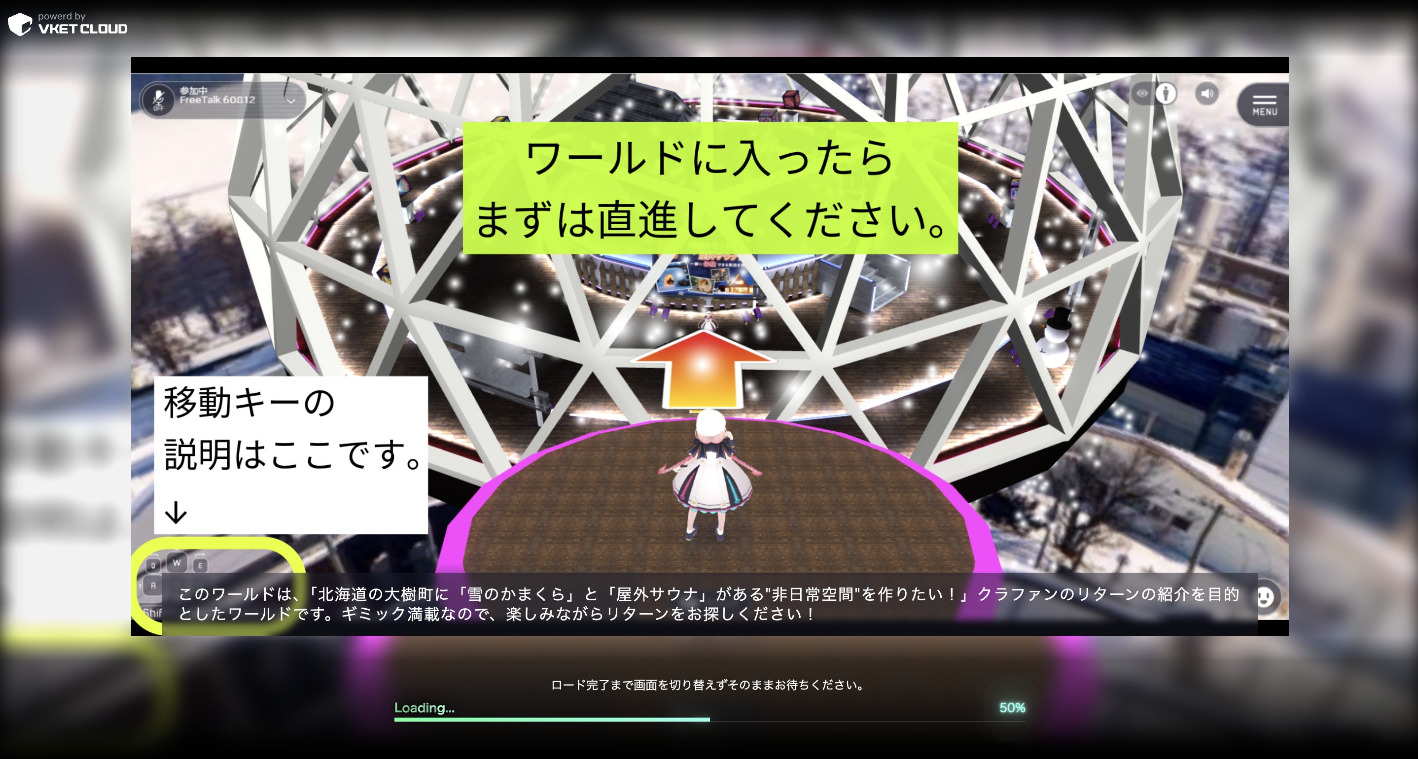 ワールドに入るとNPCがゲームの様に簡潔に場所の説明をしてくれます。