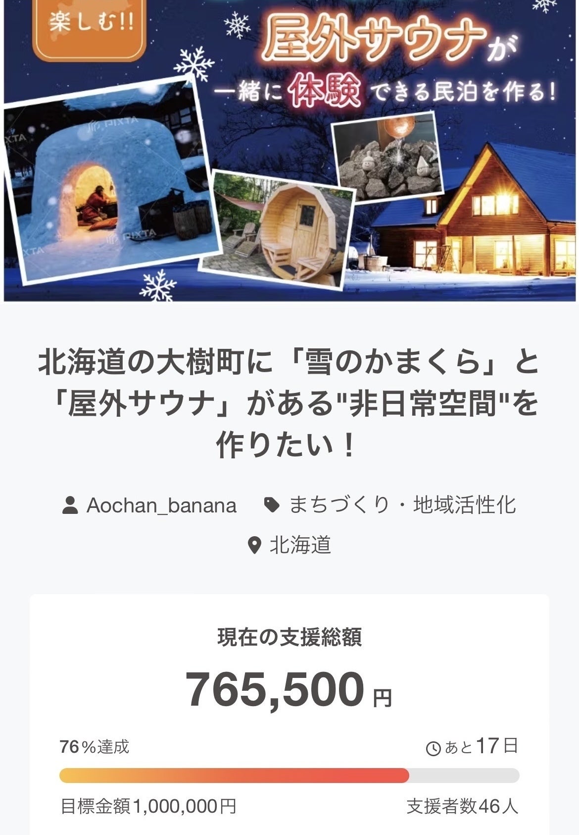 このプロジェクトは、2024/09/30に募集を開始し、 76人の支援により 1,246,000円の資金を集め、 2024/10/31に募集を終了しました