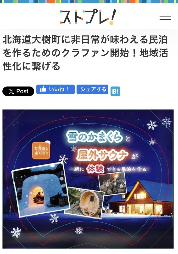 昨日、活動報告させていただいたストレートプレスだけでなく、他にもたくさんのメディアにご紹介いただいております!1 Web東奥 株式会社東奥日報社 https://www.toonippo.co.jp/articles/-/18701702 ウレぴあ総研 ぴあ株式会社https://ure.pia.co.jp/articles/-/24162103 ハピママ* ぴあ株式会社https://ure.pia.co.jp/articles/-/24162324 Infoseek ニュース(インフォシークニュース) 楽天グループ株式会社https://news.infoseek.co.jp/article/prtimes_000000001_000145319/5 東洋経済オンライン 株式会社東洋経済新報社https://toyokeizai.net/ud/pressrelease/66fb52b6af6d344e920000086 時事ドットコム 株式会社時事通信社https://www.jiji.com/jc/article?k=000000001.000145319&g=prt7 めざましmedia(めざましメディア) 株式会社フジテレビジョンhttps://mezamashi.media/article/154477718 とれまがニュース 株式会社サイトスコープhttps://news.toremaga.com/release/others/3282750.html9 NewsPicks 株式会社ユーザベースhttps://newspicks.com/news/10624157?ref=user_217210 ORICON NEWS(オリコンニュース) オリコン株式会社https://www.oricon.co.jp/pressrelease/2045953/11 マピオンニュース 株式会社ONE COMPATHhttps://www.mapion.co.jp/news/release/000000001.000145319/12 CREA WEB(クレア ウェブ) 株式会社文藝春秋https://crea.bunshun.jp/ud/pressrelease/66fb5bc7af6d34343d00001c13 @niftyビジネス ニフティ株式会社https://business.nifty.com/cs/catalog/business_release/catalog_prt000000001000145319_1.htm14 BIGLOBEニュース ビッグローブ株式会社https://news.biglobe.ne.jp/economy/1001/prt_241001_2744798073.html15 TBS NEWS DIG TBS・JNN NEWS DIG合同会社 https://newsdig.tbs.co.jp/articles/-/1459888?display=116 iza(イザ!) 株式会社産経デジタルhttps://www.iza.ne.jp/pressrelease/prtimes/G6L5FUWDHJNBZJVYZ4M4QOKXYM/17 エキサイトニュース エキサイト株式会社 https://www.excite.co.jp/news/article/Prtimes_2024-10-01-145319-1/18 SEOTOOLS ブラストホールディングス株式会社https://www.seotools.jp/news/id_000000001.000145319.html19 eltha(エルザ) オリコン株式会社https://beauty.oricon.co.jp/pressrelease/2045980/20 30min. サンゼロミニッツ 株式会社イードhttps://30min.jp/release/prtimes/detail/50289021 暮らしニスタ(クラシニスタ) 株式会社主婦の友社https://kurashinista.jp/pressrelease/detail/52162822 産経ニュース 株式会社産業経済新聞社https://www.sankei.com/pressrelease/prtimes/G6L5FUWDHJNBZJVYZ4M4QOKXYM/23 BEST TiMES(ベストタイムズ) 株式会社ベストセラーズhttps://www.kk-bestsellers.com/articles/-/press_release/3179806/24 PRESIDENT Online(プレジデントオンライン) 株式会社プレジデント社https://president.jp/ud/pressrelease/66fb5c04af6d34821800009525 @DIME(アットダイム) 株式会社小学館https://dime.jp/company_news/detail/?pr=193265926 JBpress(ジェイビープレス) 株式会社日本ビジネスプレス https://jbpress.ismedia.jp/ud/pressrelease/66fb5c01af6d3474b700009427 ジョルダンニュース! ジョルダン株式会社https://news.jorudan.co.jp/docs/news/detail.cgi?newsid=PT000001A000145319残すところあと10日!ご支援はもちろんですが、認知を広げていくためにも頑張ってまいります!引き続き応援よろしくお願いします!