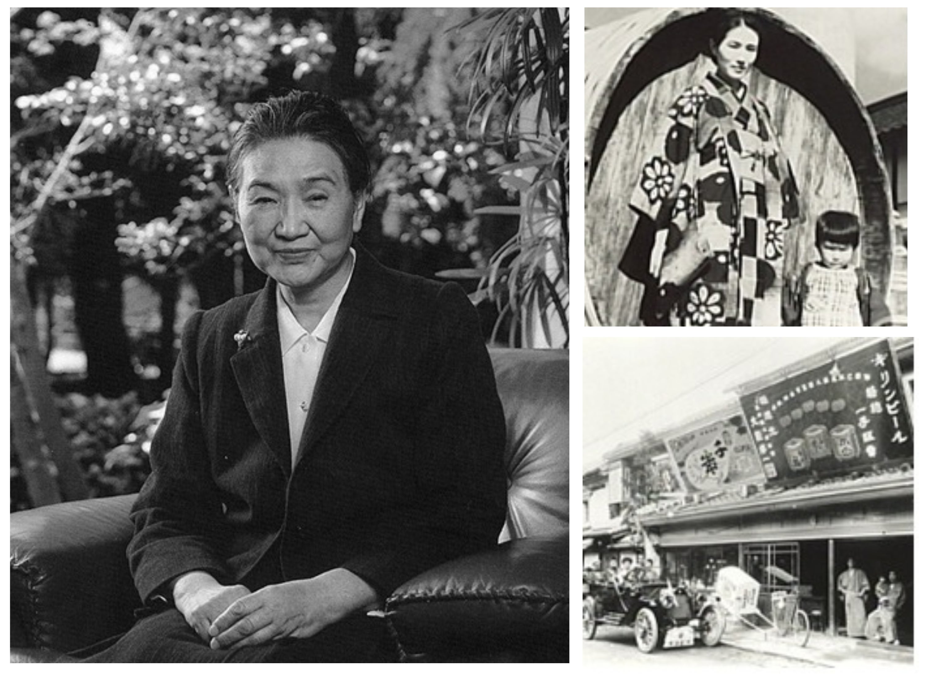 左:紅乙女酒造社長当時の林田春野 右上:若竹屋時代 右下:生家の造り酒屋