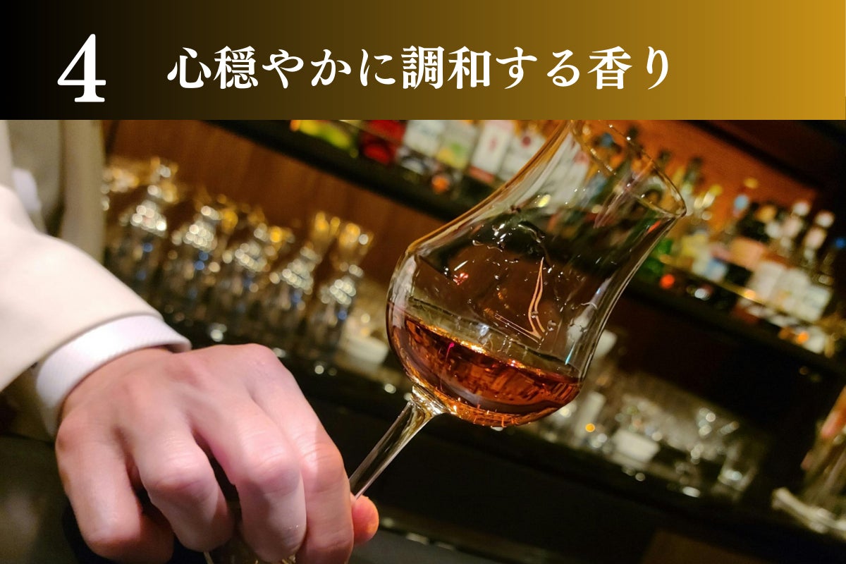 フレンチオーク樽による長期熟成が織り成す重厚感のある樽香がベースとなり、柔らかな口当たりとともに香ばしい甘さが広がります。主張の強い複数の香りが華麗に調和し、心を穏やかに鎮めます。