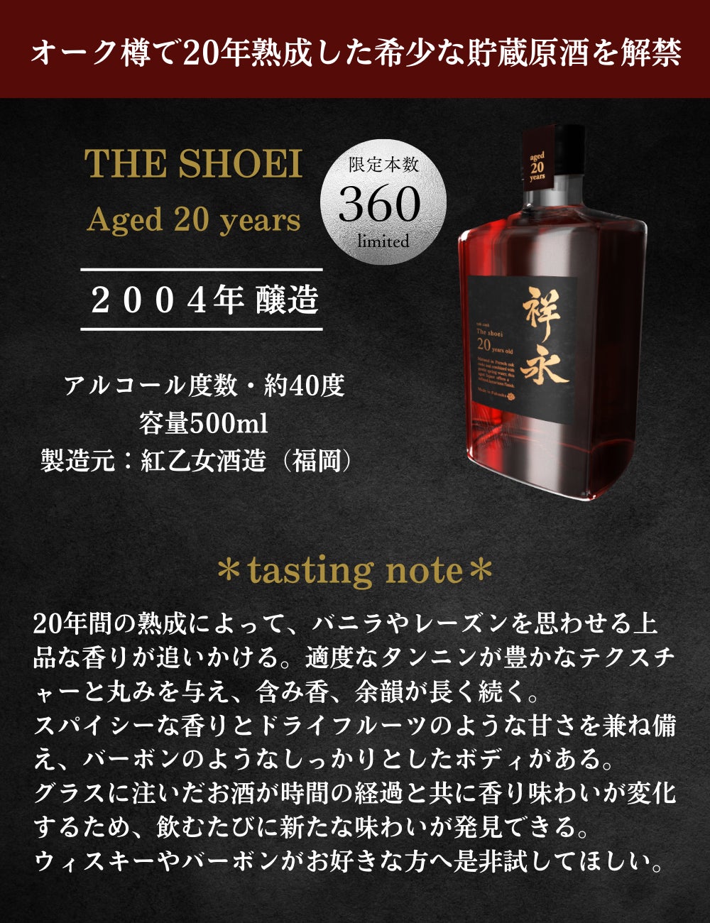 「ウィスキー」製造に欠かせないオーク樽熟成を併せ持つ唯一無二の香り高い熟成酒を遂に解禁。