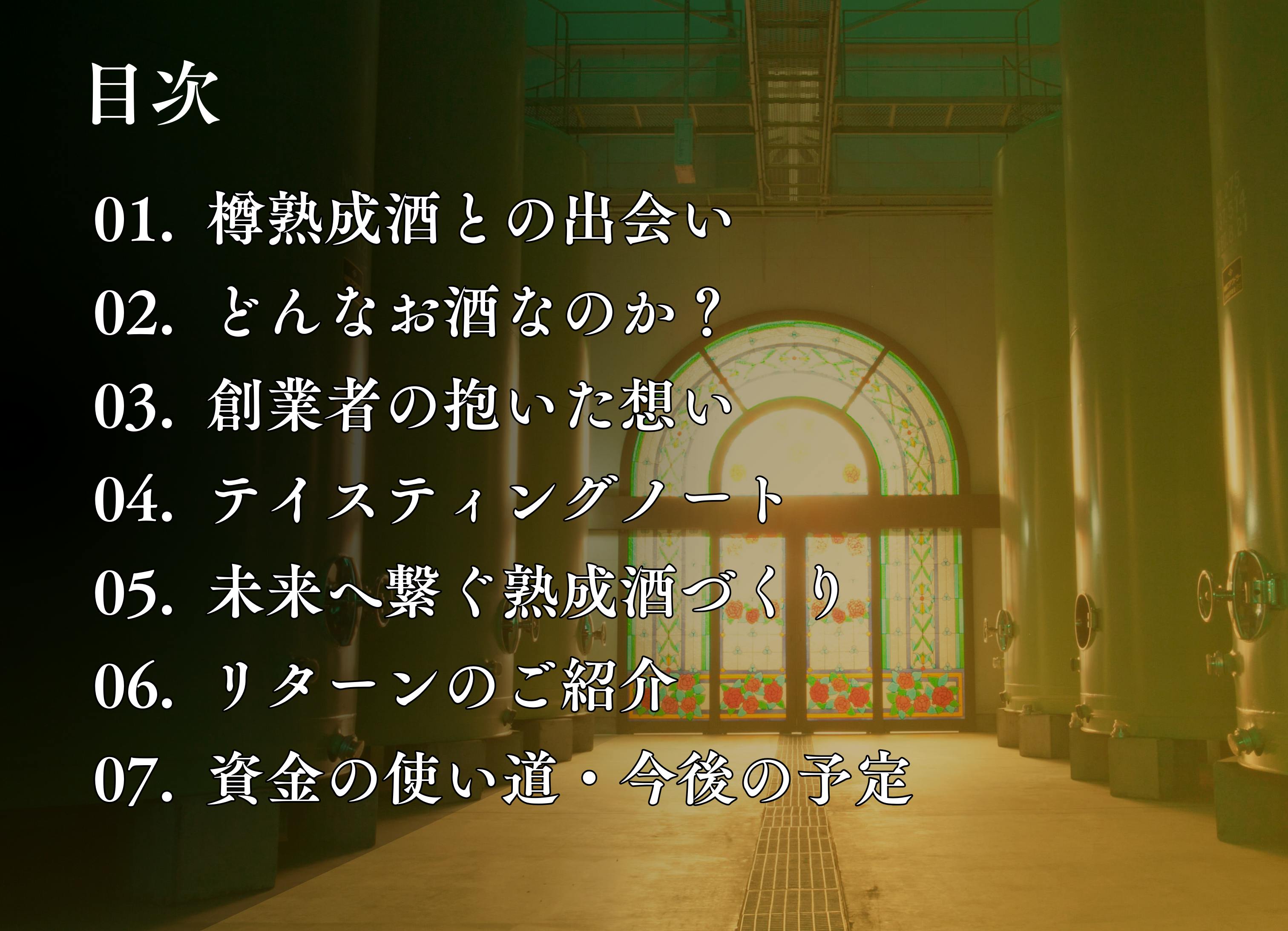今回、クラウドファンディングを通じて、多くの方にこの「熟成酒」の魅力を体感していただきたいと考えています。