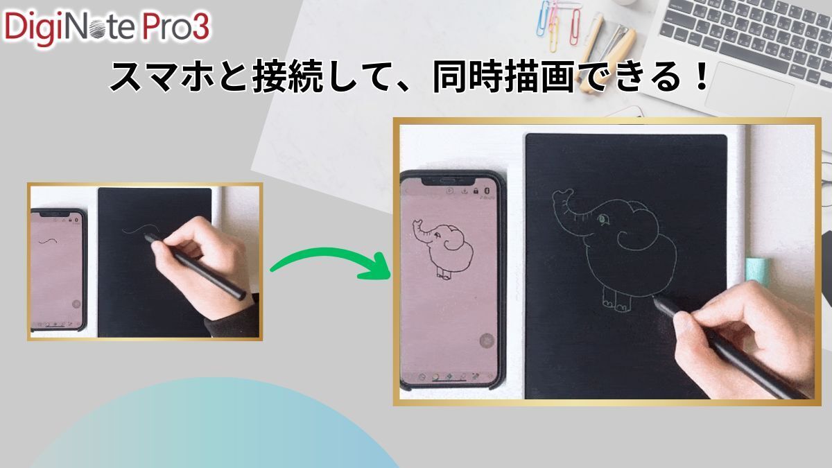 また、『DigiNote Pro3』 本体にメモやイラストなど書いたもの保存しておき、あとからまとめてスマホに取り込むこともできます。